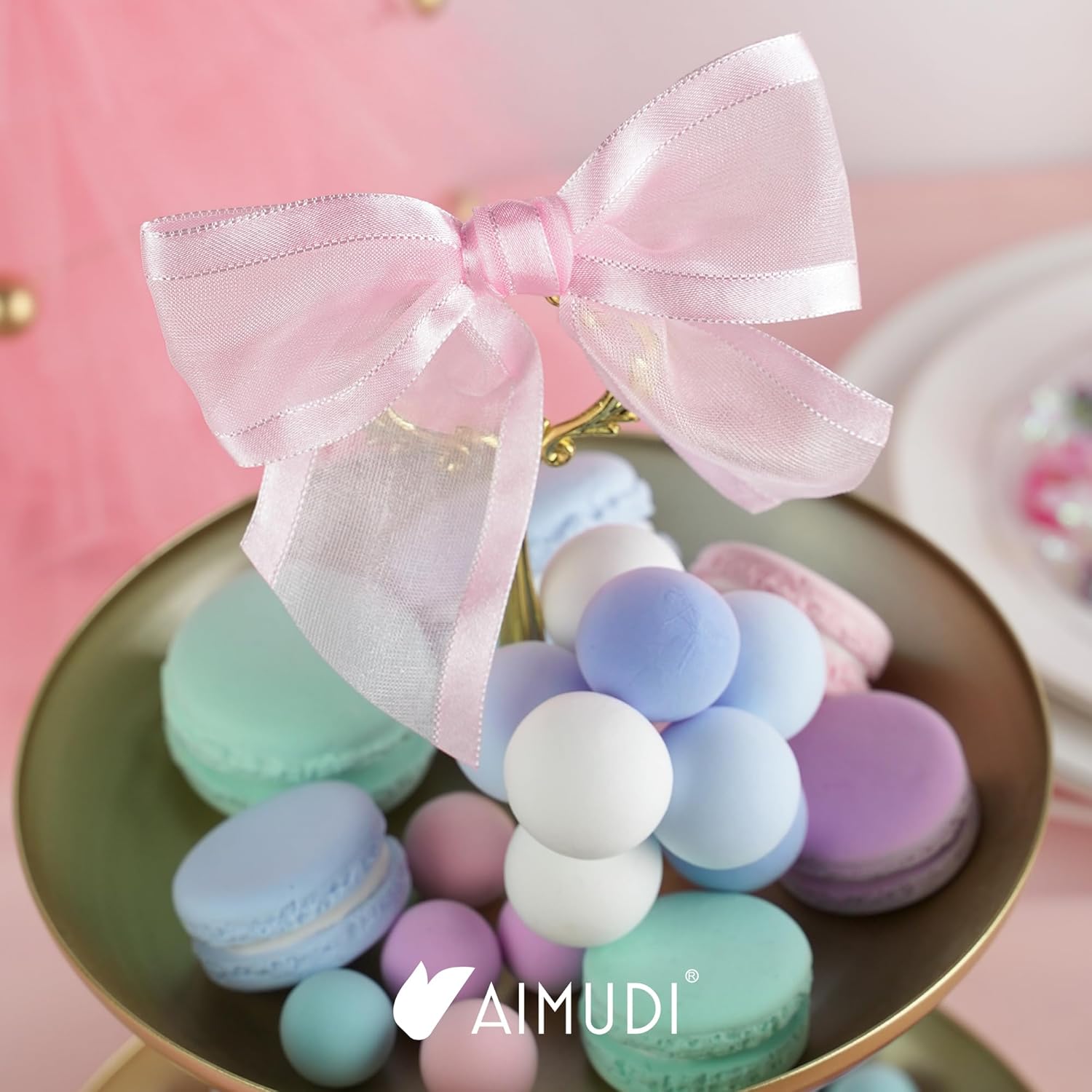 - PRETIED RIBBON BOWS- Decorative bows is made of 1-1/2'' pink organza satin edge ribbon with romantic transparency and glossy lustre, easily adding a elegant final touch to your party favor, cake pop bags, gift basket