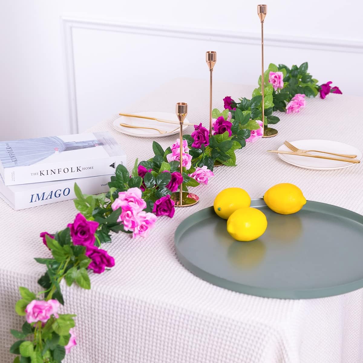 - 【New Dual Color Flower Vines】: A flower vine consisting of fuchsia and pink roses, Vibrantly colored Rose Bring stark freshness to your home or outdoor party décor.