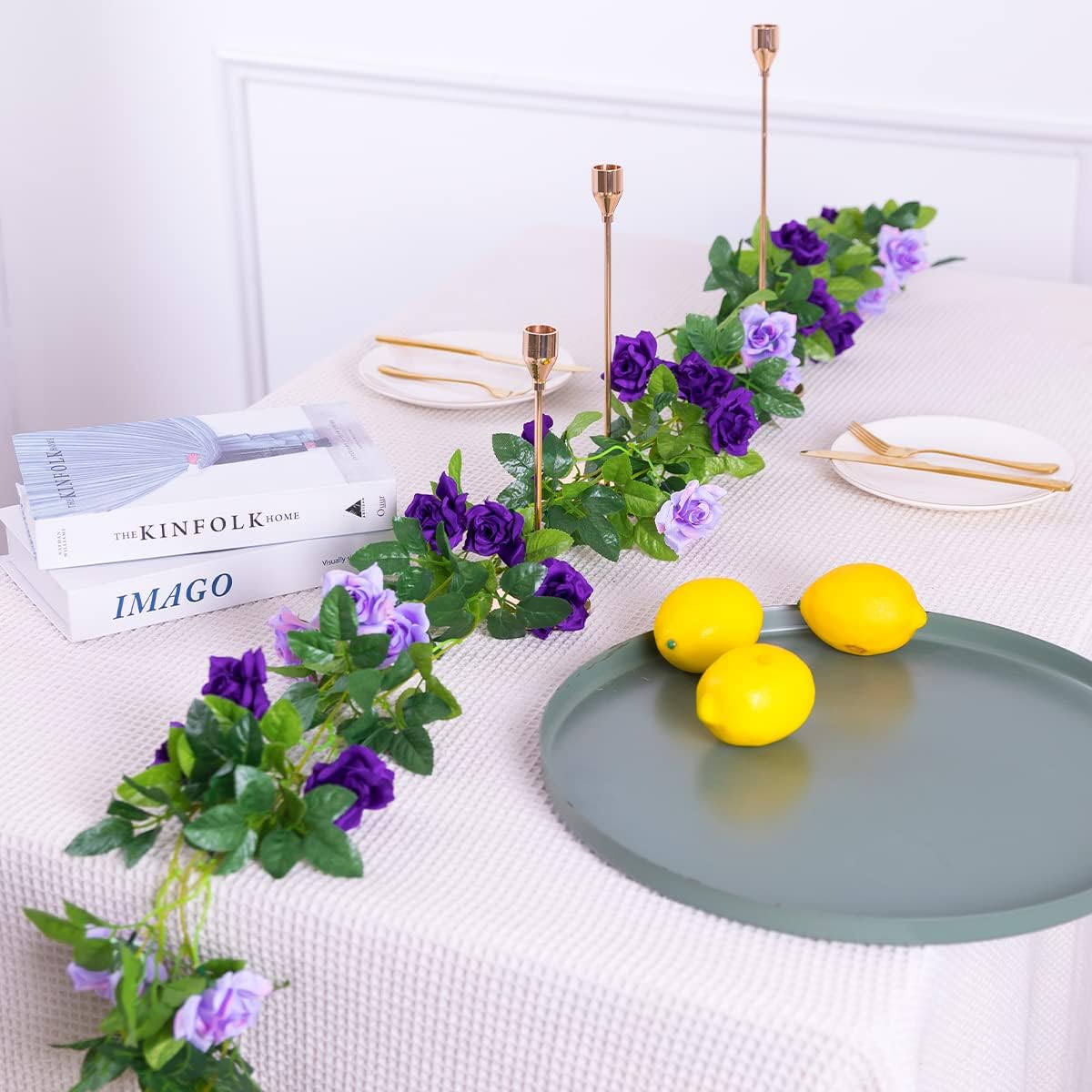 Kisflower 3Pack Artificial Rose Flower Garland, 23.7FT Fake Vines Silk Flowers Hanging Rose Ivy for Wedding Arch Decorations Room Party Home Garden Hotel Office Wall Decor (Purple)