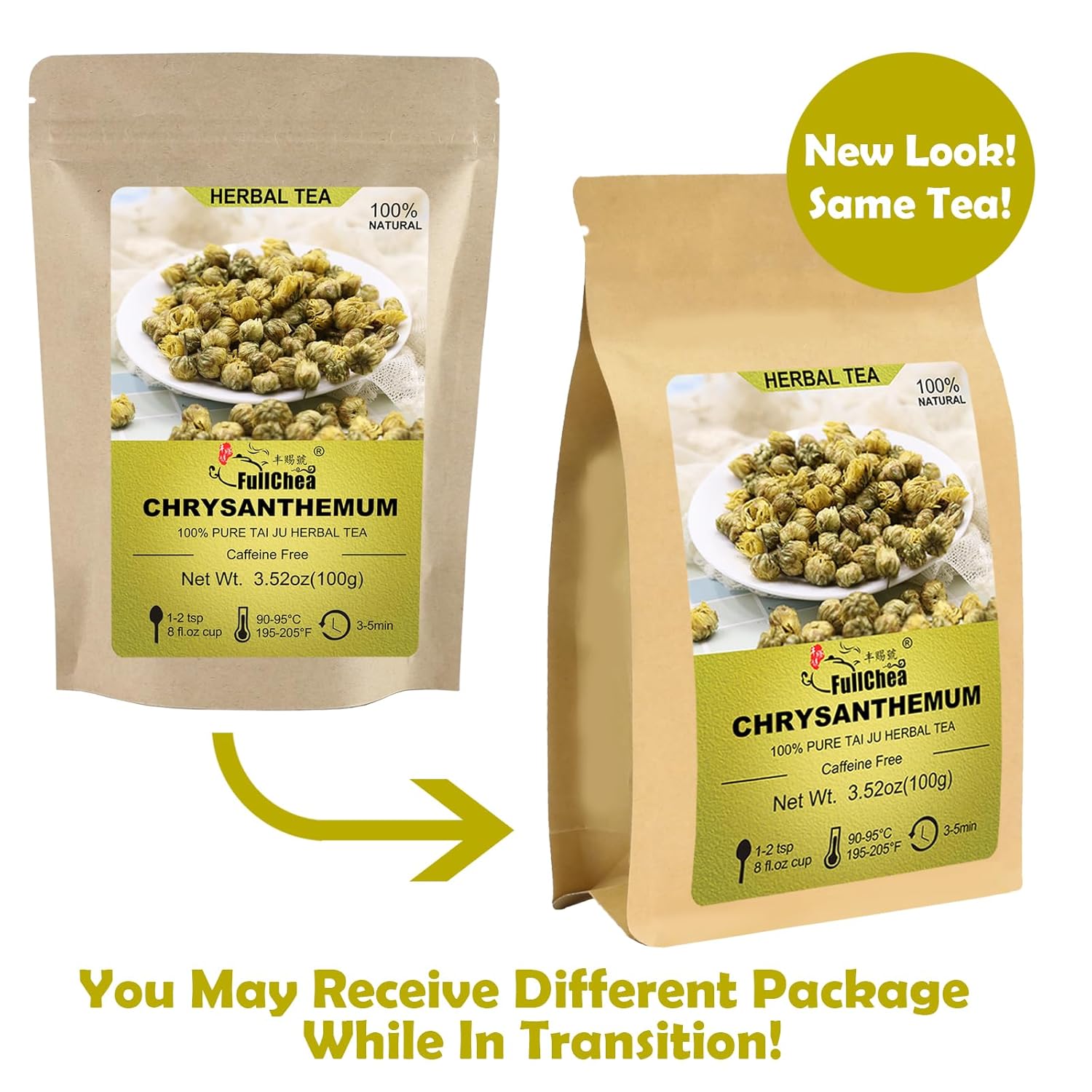 FullChea - Top Grade Chinese Chrysanthemum Tea - 3.52oz/100g - Premium Natural Dried Chrysanthemum Flower - Tai Ju Herbal Tea Loose Leaf - Non-GMO - Caffeine-free - Sweet & Fresh