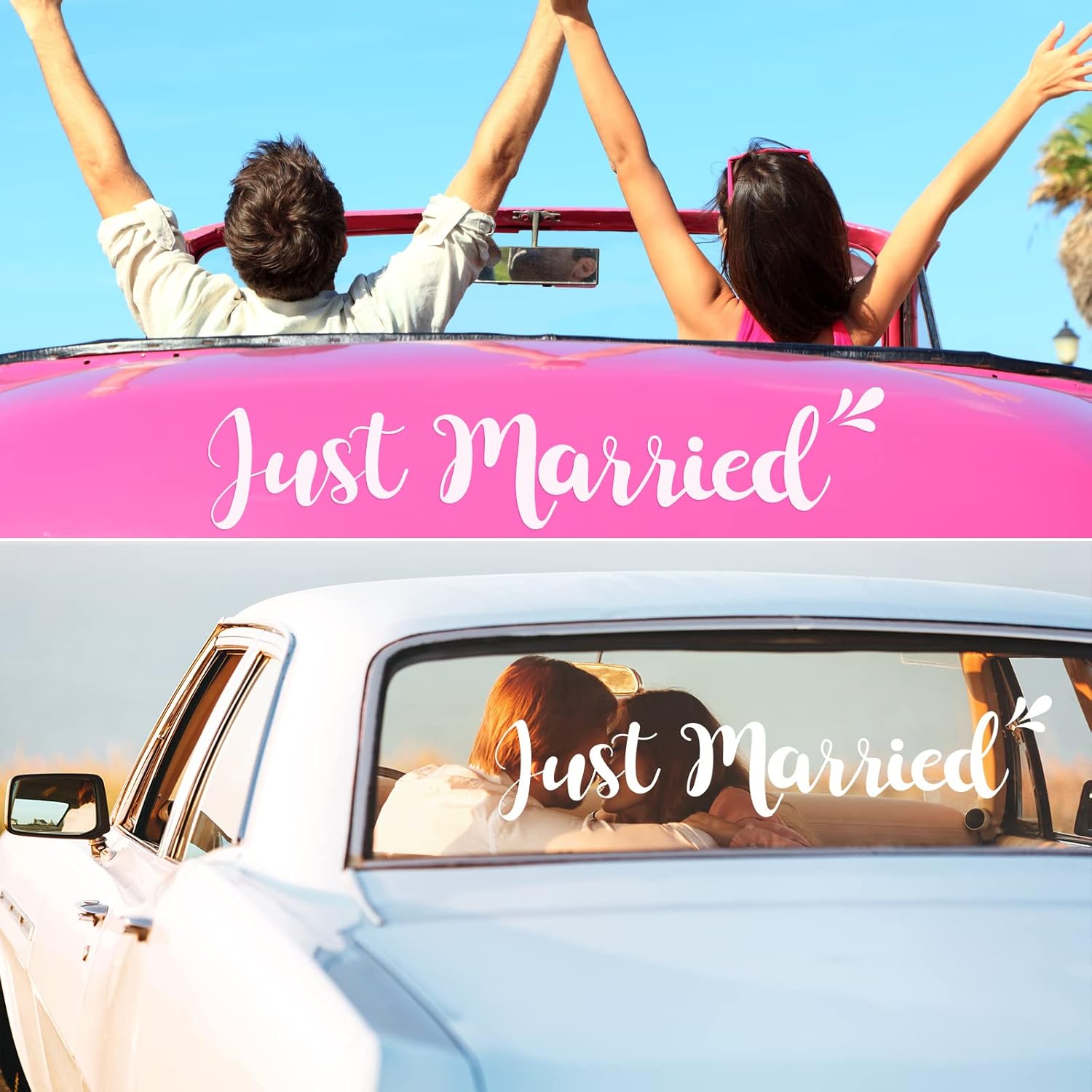 - Just Married Window Decals: made from vinyl, the wedding day car stickers are sturdy and reliable, not easy to break or tear, suitable for many smooth surfaces, whether it is in a cold winter or in a hot summer, you can send your sincere wedding blessings to the newlyweds or the couples on their honeymoon