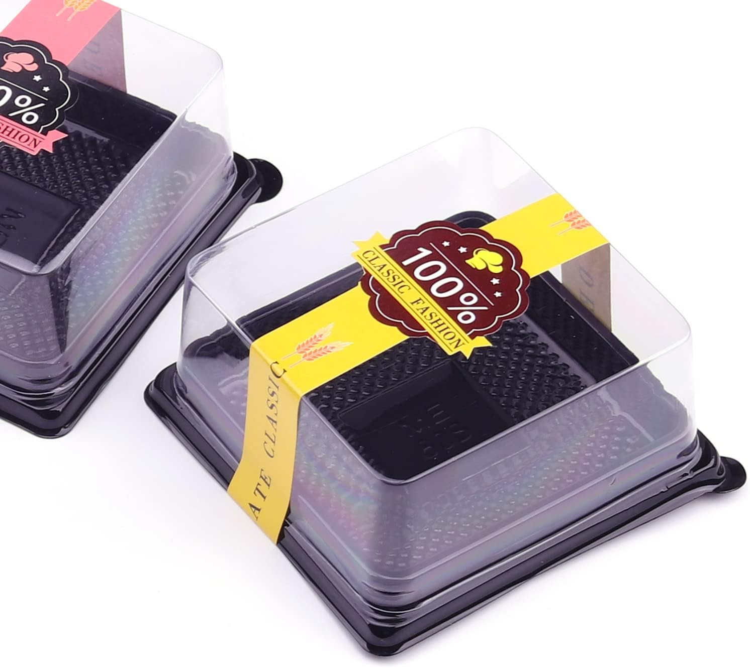 - Disposable, Safe, Durable- The mini cake boxes are made of high quality food grade plastic material, odorless, tasteless and safe to use. The plastic cake box can keep your desserts in clean and fresh condition for a long time