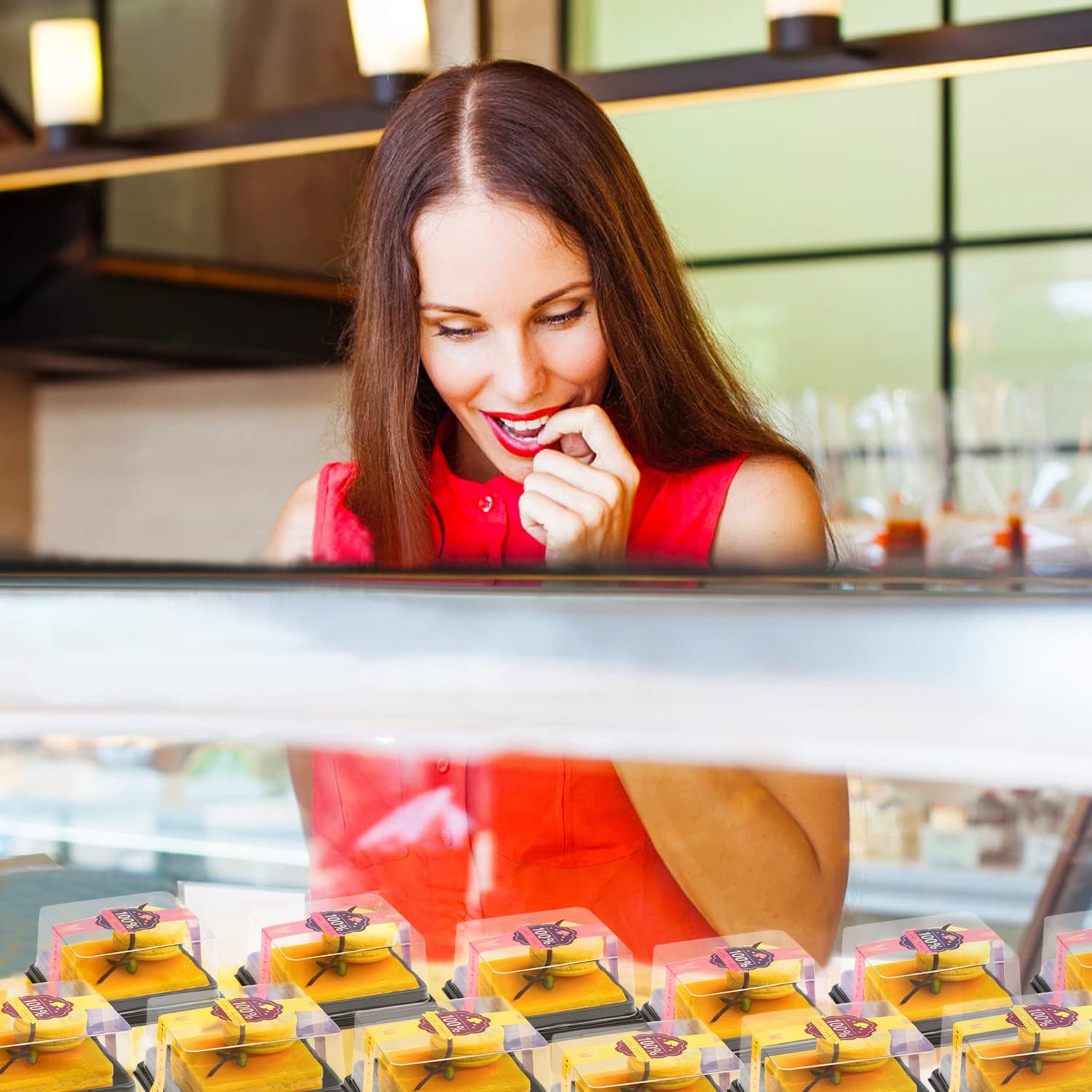 - Great Value Mini Cupcake Containers- You will receive 50 sets clear plastic mini cake boxes muffin holders and 50 pcs long sealing stickers, you can tape the stickers onto the container for securely closure, it also add a decorative touch to the mini cake box