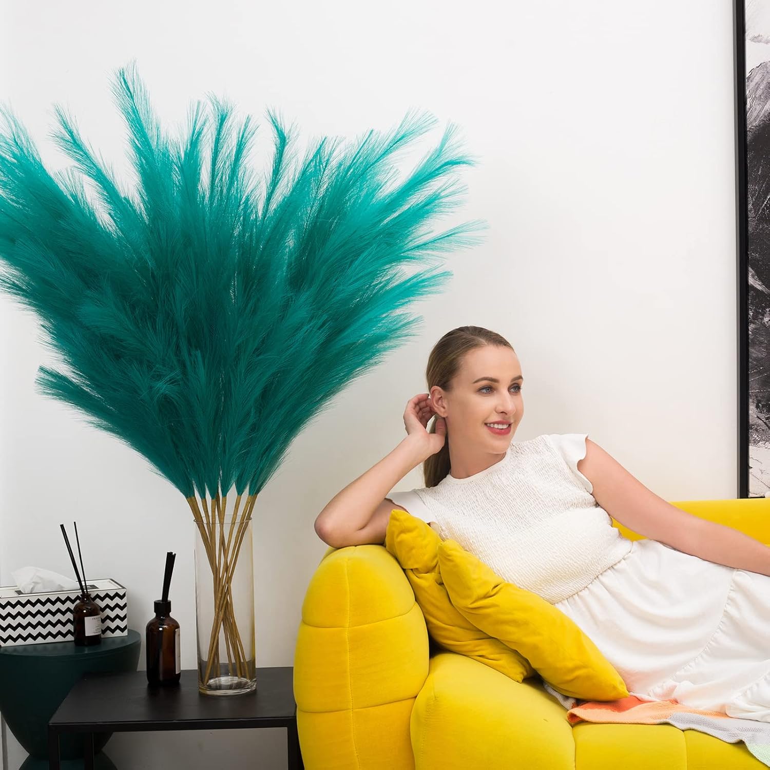 Pampas Grass Decor Tall, 43"/110cm Faux Pampas Grass 6 Stems Large Pompass Grass Branches Tall Bulk Boho Flower Arrangement for Home Room Wedding Party Decor (Green)