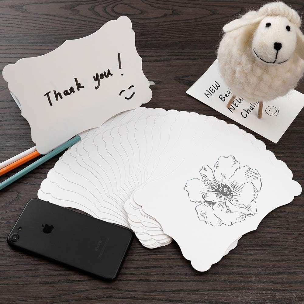 50 Pack Blank Kraft Cards Cardstock Thick Paper Brown Greeting Cards for DIY Gift Card Menus, Baby Shower and Wedding Invitations (White, 4x6IN)