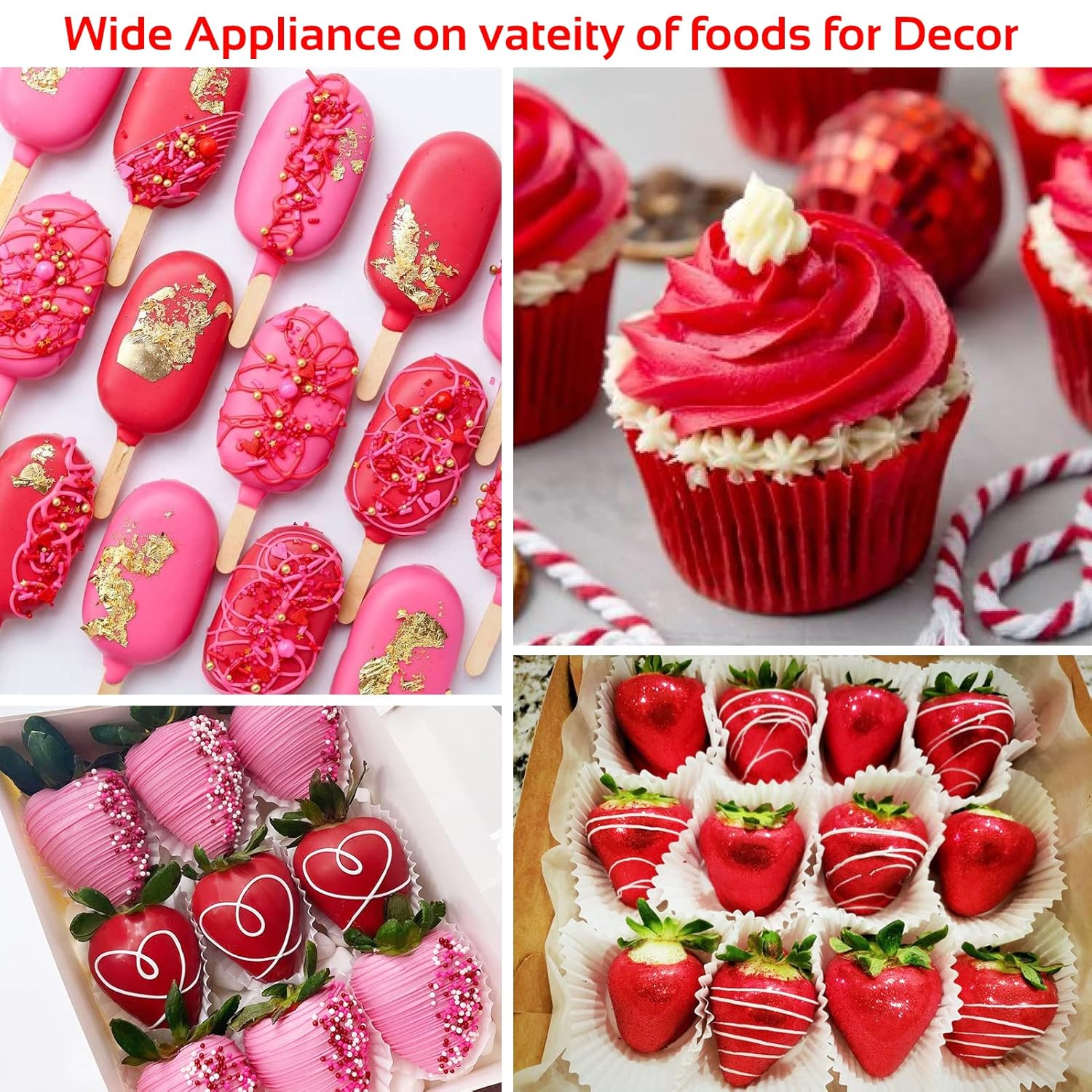 - 【Easy to Use】Whether you are a professional cake artist or a DIY baker, Jelife edible red luster dust powder for strawberries is easy to use. Beginner-friendly and edible gold dust also can be brushed or used spray gun for smoothing when mixed with vodka, grain alcohol, or oil-based flavorings