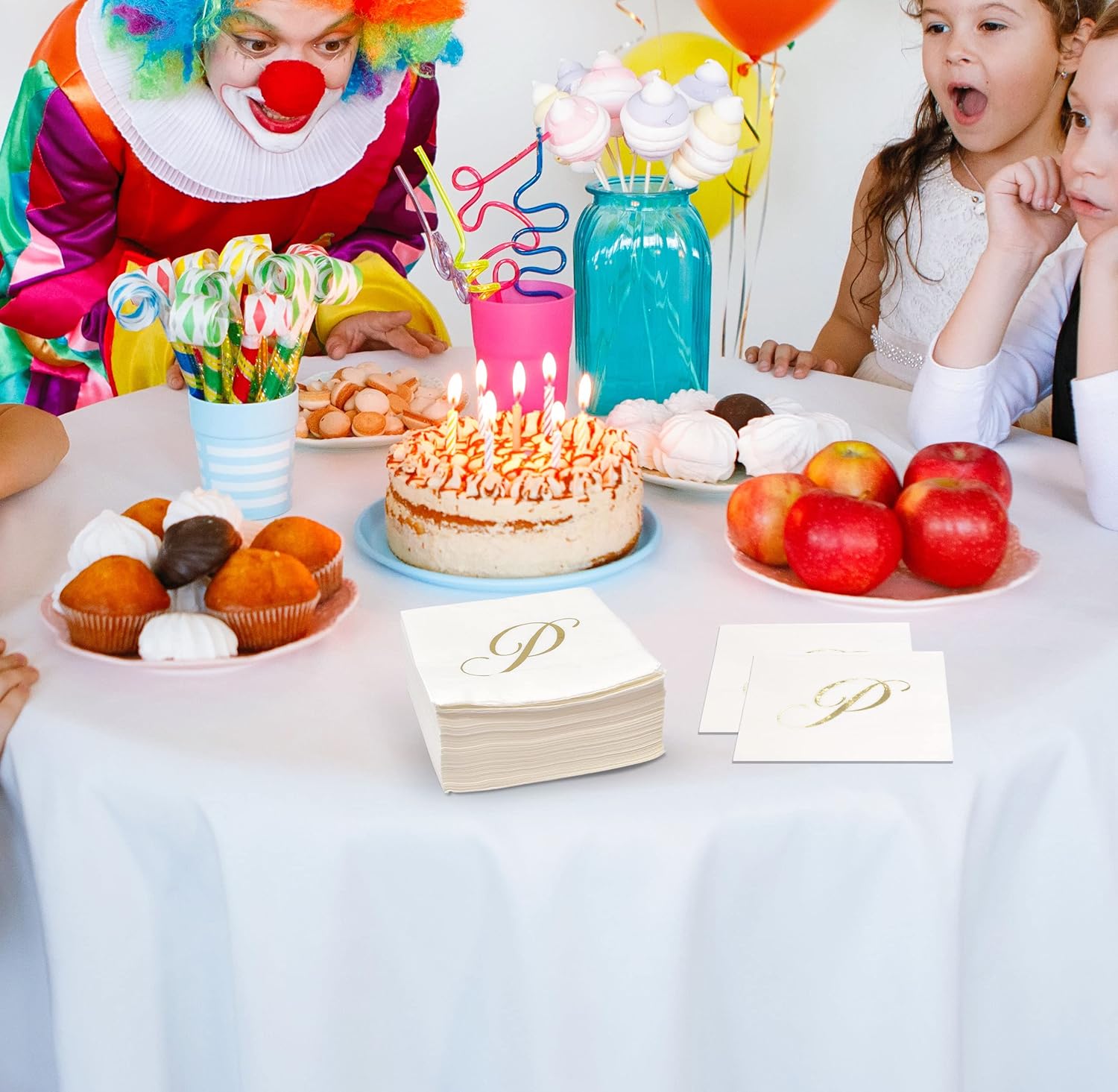 - High Quality: Napkins are made of high quality thick paper. Napkins are soft and absorbent & dry your hands quickly. These personalized napkins will be great for any party. The metallic gold P initial party napkins really adds dimension to your parties as your guests will love the pretty design.