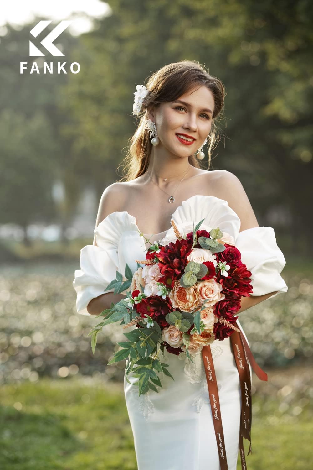 - ❤️ 【27Pcs in Package】Our artificial flowers combo includes: Burgundy Semi-Cactus Dahlia x 3 (5"), Sunset Orange Waterlily Peony x 3 (3.5"), Burgundy Roses x 3 (3.5"), Cream Champagne High-Centered Roses x 3 (3.5"), Cream Vendela Roses x 3 (3.5"), Brick Red Flowers x 3 (2.5"), Plum Blossoms x 3 (2.5"), Mini Vanilla Flowers x 3, Eucalyptus Stems x 3, Nandina Plants x 3. [Notes: Ribbons are not included. Colors may vary slightly due to differences in monitor settings.]