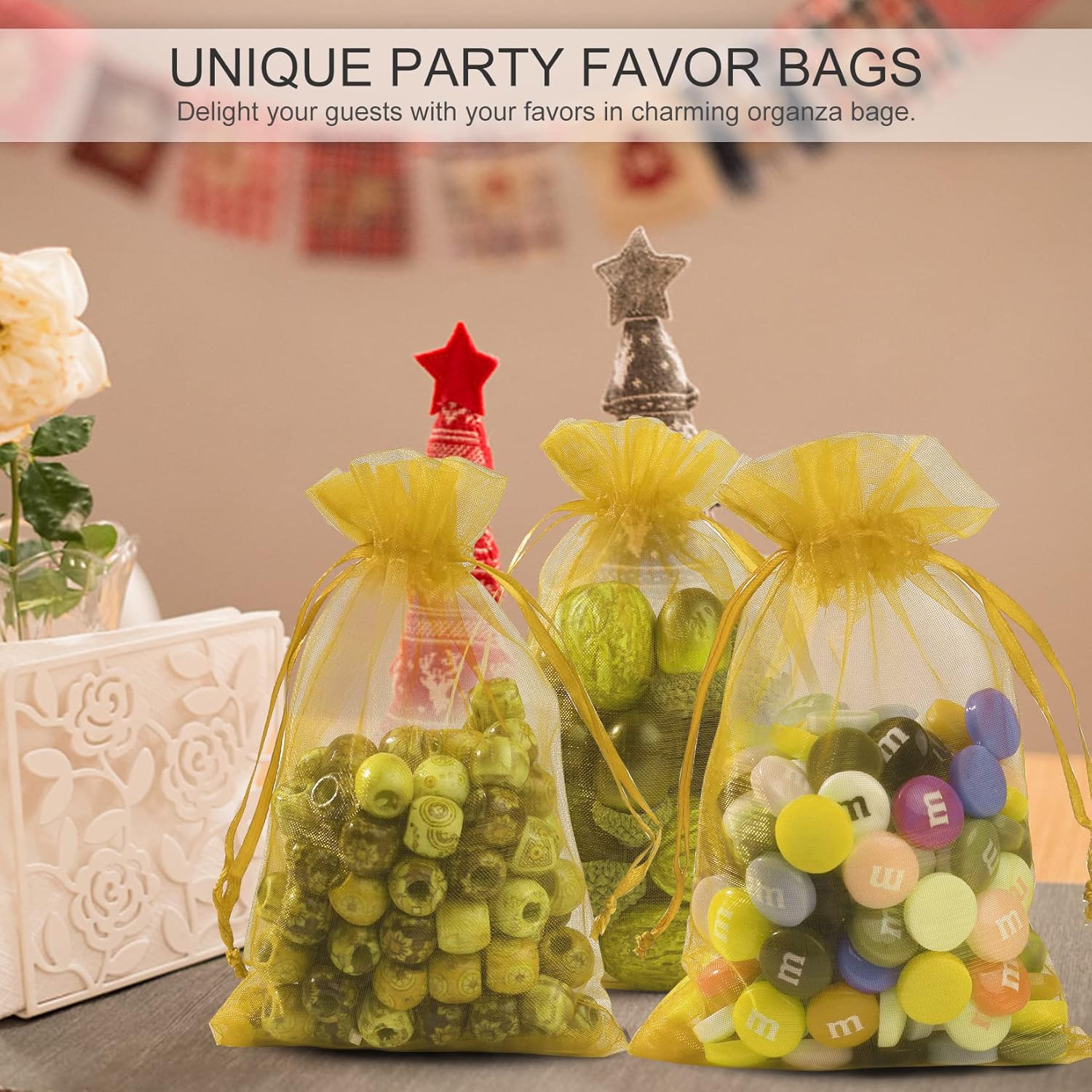 ANZNKU 100 Pack Organza Bags, 4 x 6 inch Small Premium Golden Favor Bags with Drawstring, Sheer Jewelry Mesh Bag, Mesh Gift Bag for Wedding Party Christmas