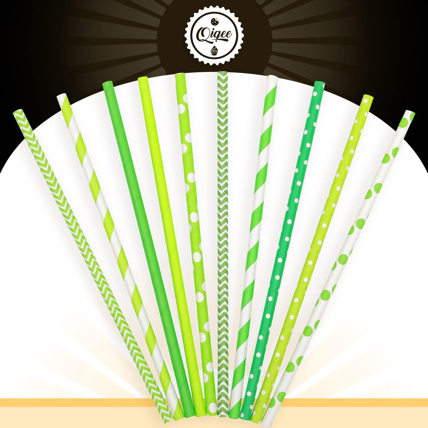 Green Paper Straws for Drinking Green Disposable Straws 150pcs Disposable Straws Bulk(10 Pattern) qiqee