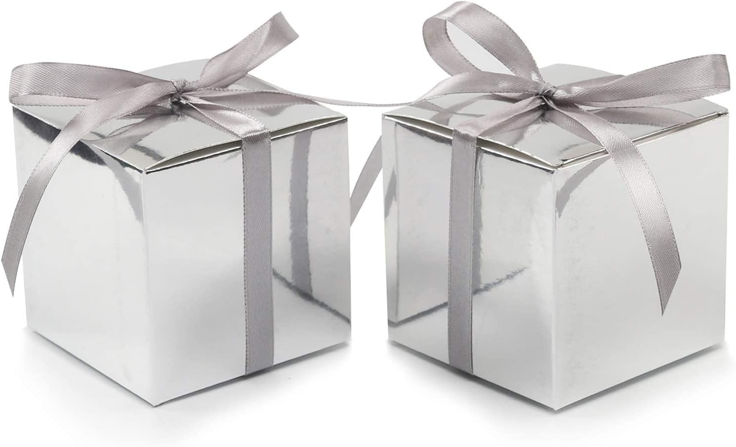 COTOPHER 25pcs Wedding Favor Boxes, Paper Gift Boxes 3x3x3 Inches Small Gift Boxes with Ribbons Small Boxes for Gifts, Crafting, Cupcake, Candy, Bridesmaid Proposal Boxes