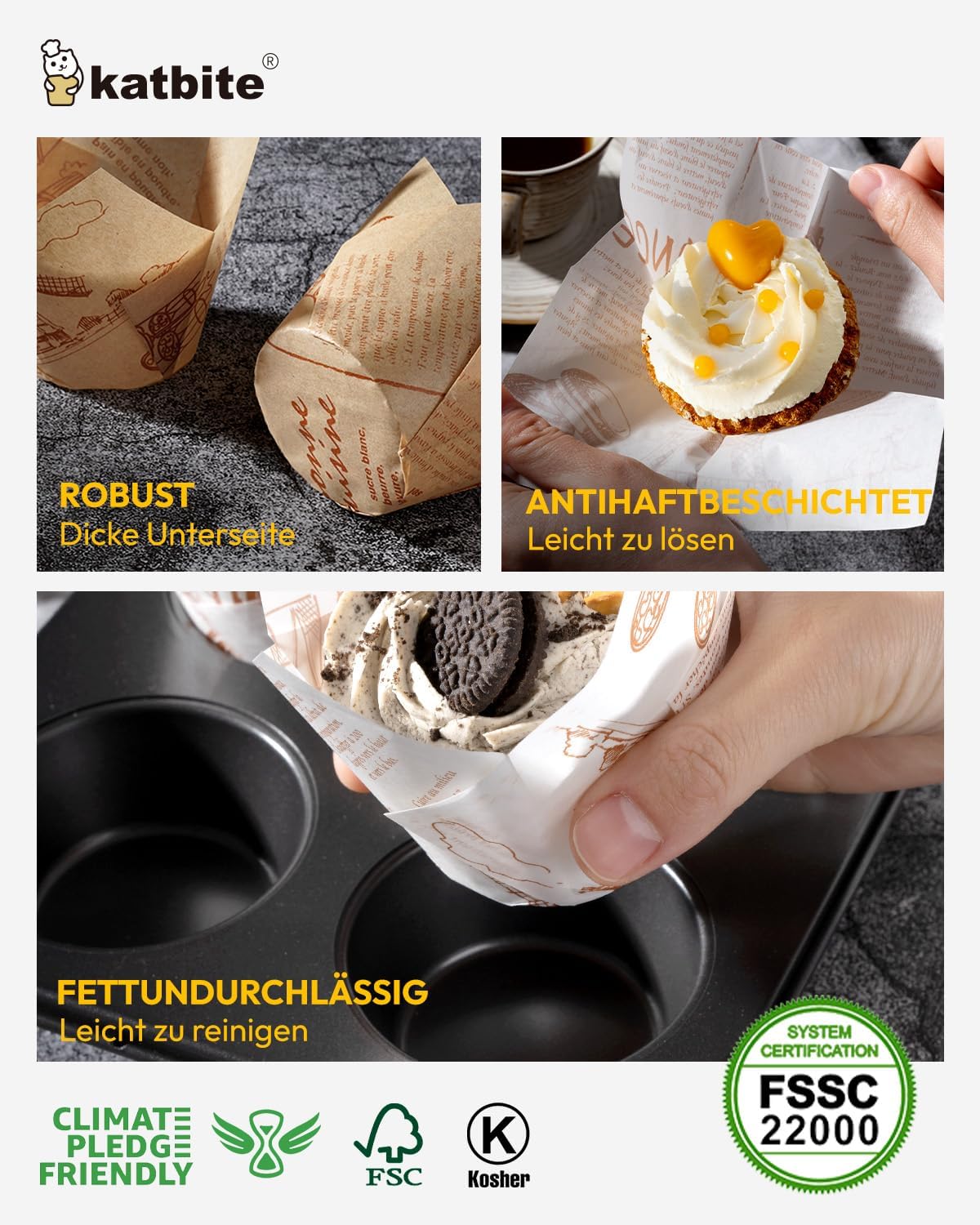 Katbite Tulip Cupcake Liners 200PCS, Muffin Baking Cupcake Liners Holders (newspaper)
