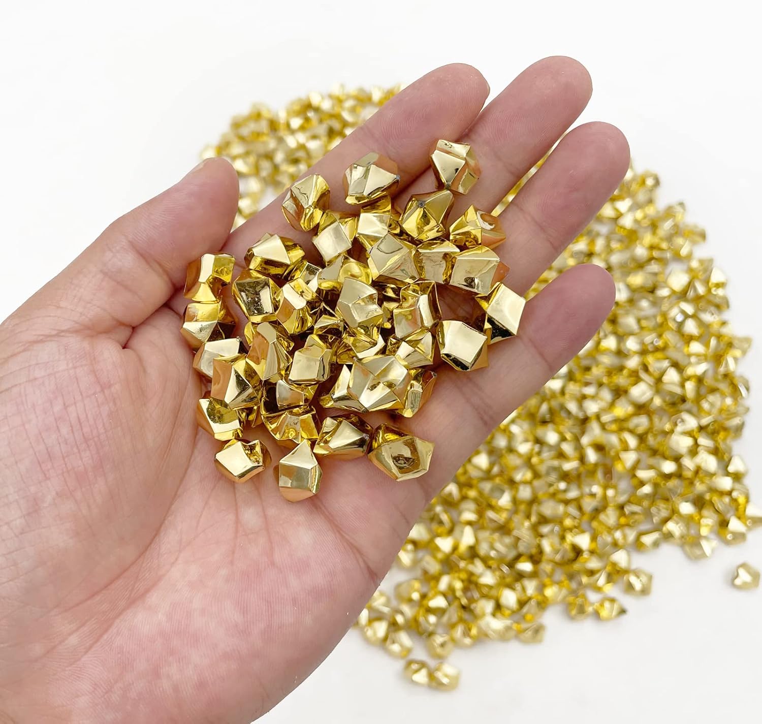 - Package includes about 650PCS gold acrylic ice. Each golden acrylic ice cubes: (11*14mm) 0.43*0.55 inch