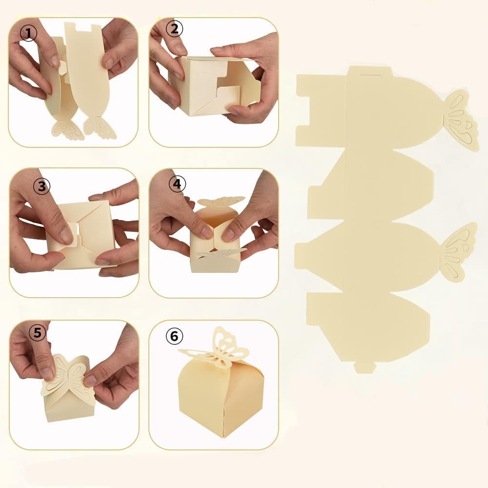 - Material and Size:Light Yellow wedding favor boxes made of high-quality safe paperboard, each cube shape box is about 2.4 x 2.4 x 2.2 inch / 6 x 6 x 5.5 cm , the height is not including the butterfly.