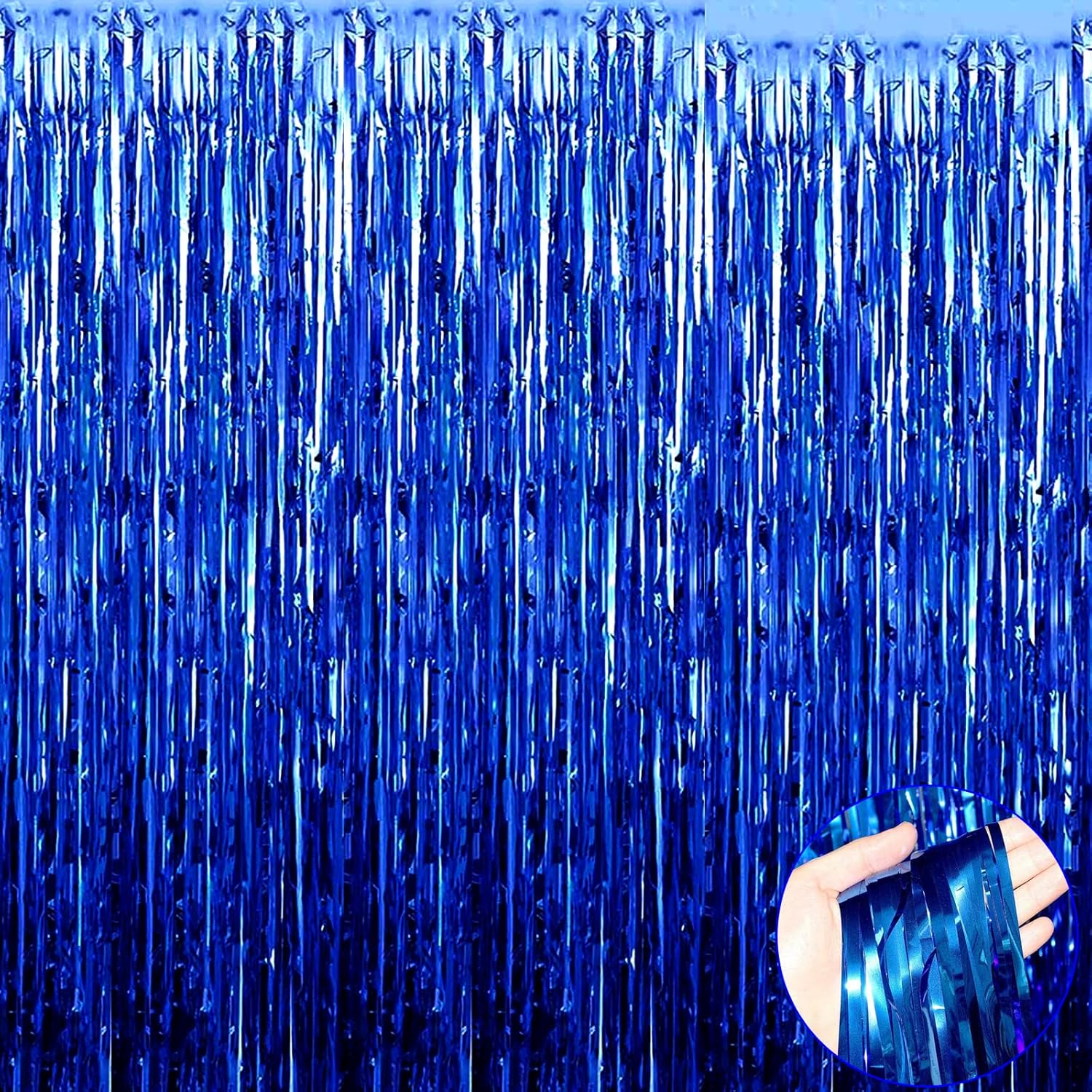 4 Pack Blue Foil Fringe Curtain Backdrop, 3.28Ft x 9.84Ft Metallic Tinsel Streamers for Sea Party, Photo Booth Props, Birthday, 2022 Summer Ocean Theme Party Decoration Supplies