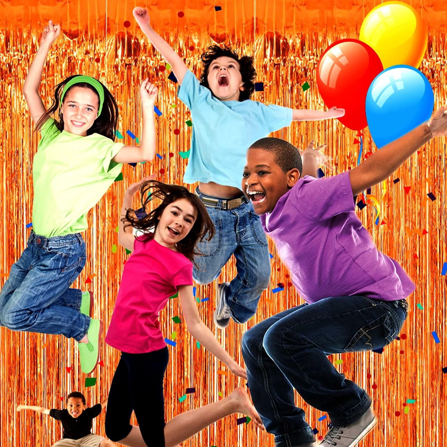 4 Pack Orange Foil Fringe Curtain Backdrop, 3.28Ft x 9.84Ft Metallic Tinsel Foil Fringe Streamers Curtains for Party, Photo Booth Props, Birthday, 2022 Graduation Decoration Supplies, orange 3m