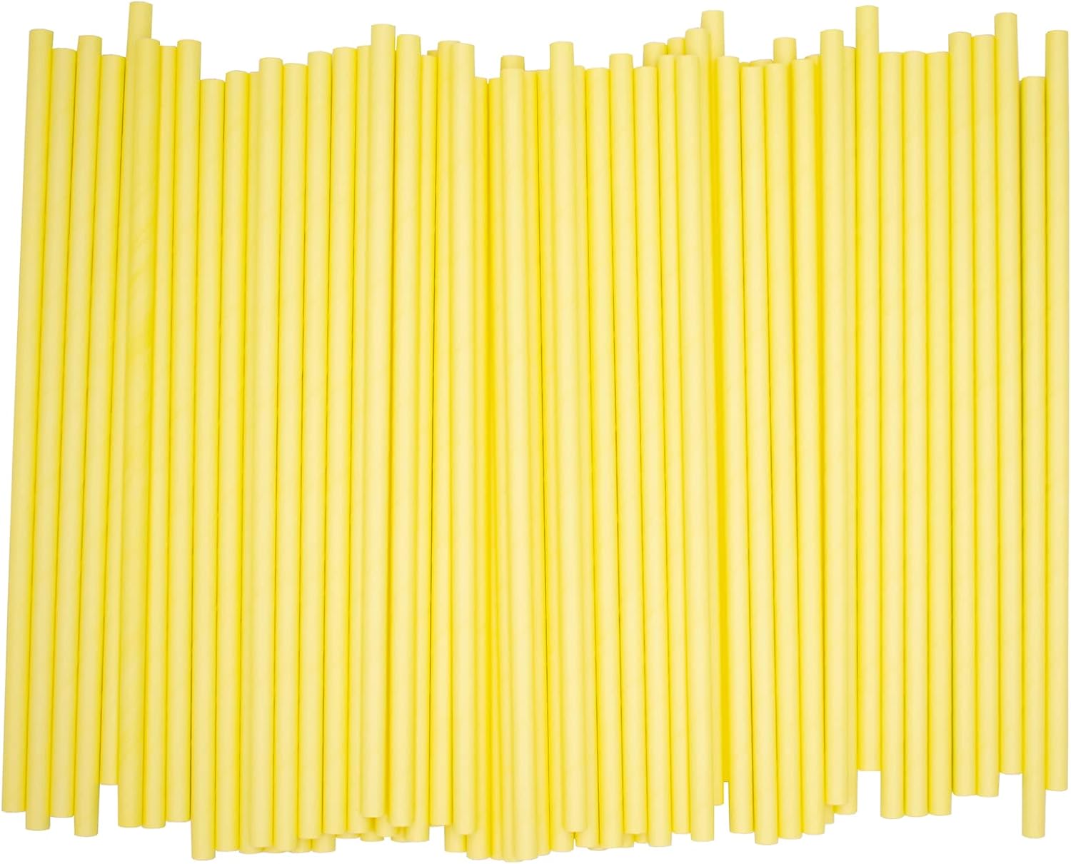- Pack of 300 Pastel Yellow wrapped paper straws that are 7.75” long and have a diameter of 0.25”. Made with 4-ply paper which translates into thicker and more resilient straws that won’t wilt or change shape in both hot and cold drinks.