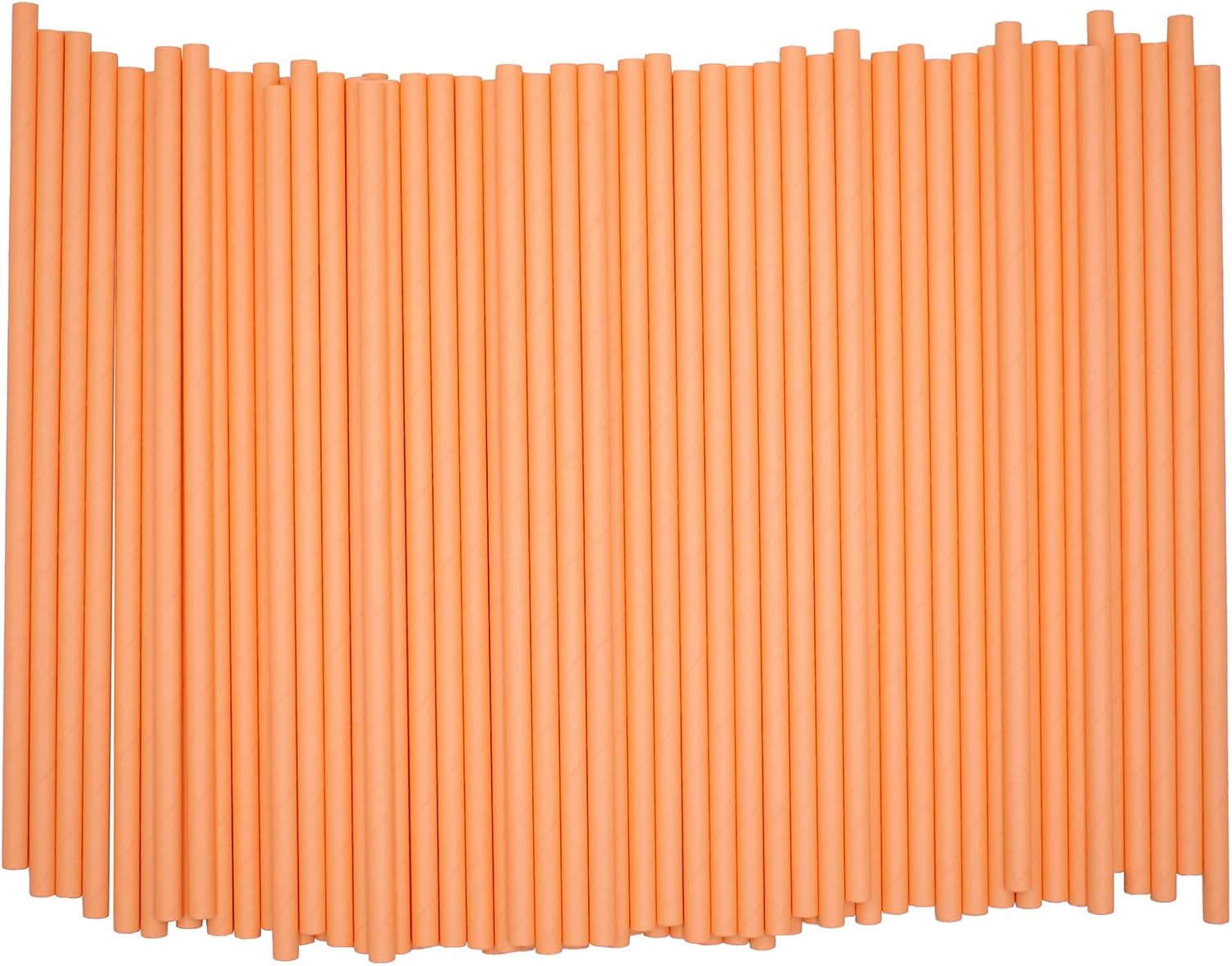 Pack of 300 Pastel Orange Biodegradable 4-Ply Paper Drinking Straws (Compostable, Non-toxic, BPA-free)