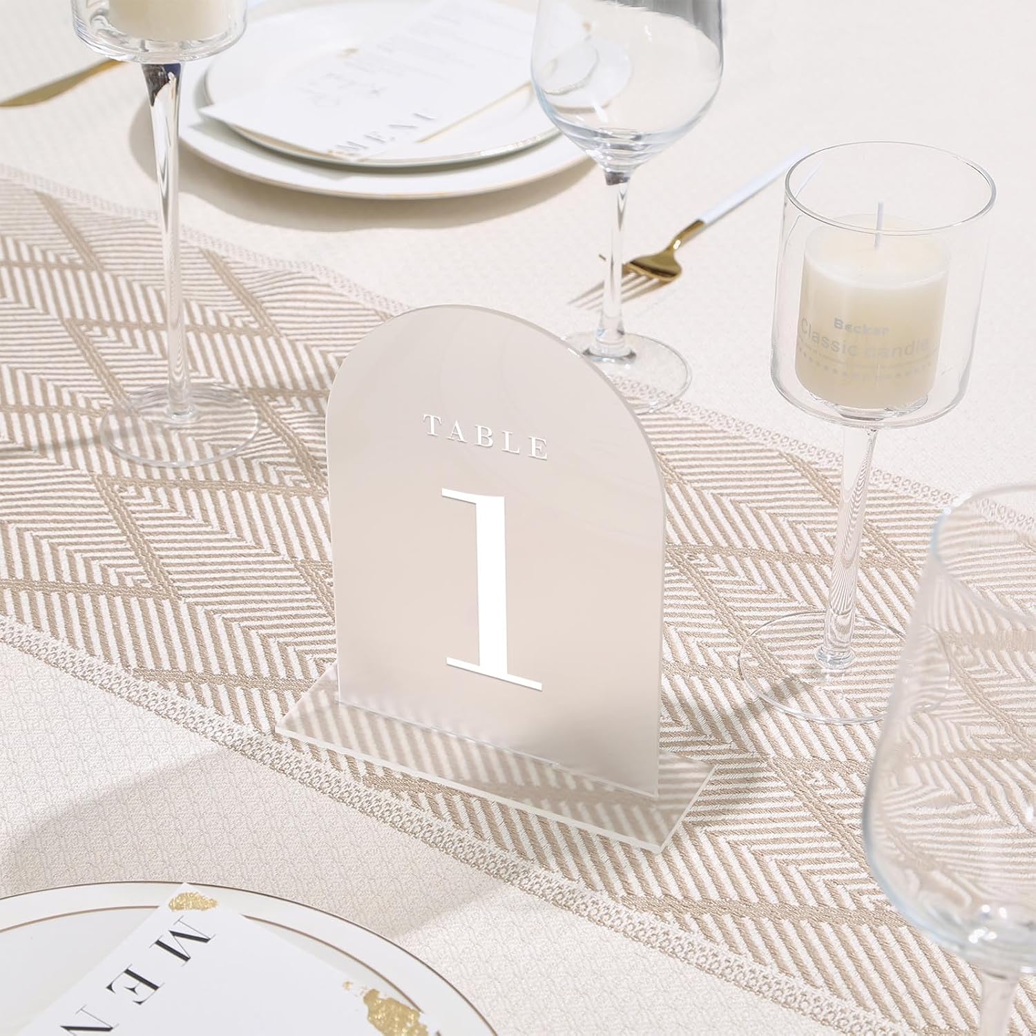 UNIQOOO Frosted Arch Wedding Table Numbers with Stands 1-30, 5x7" Acrylic Display Signs and Holders, Pack of 30, Perfect for Centerpiece, Reception, Decoration, Party, Anniversary, Event