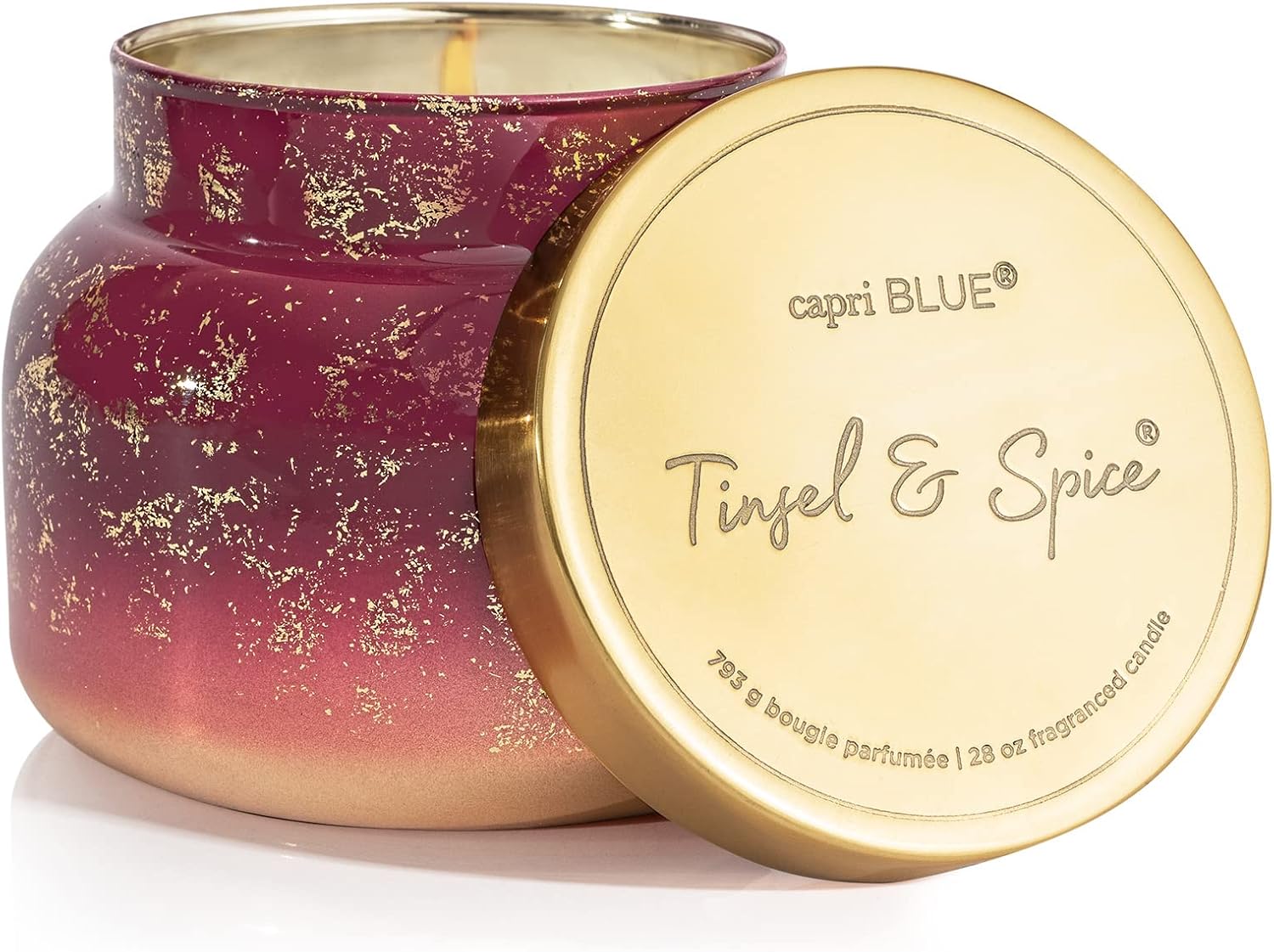 Capri Blue Glimmer Jar Candles - Luxury Holiday Scented Candles for Home - Long Lasting Soy Wax Blend - Scented Holiday & Home Decor - Tinsel & Spice Oversized Jar (28 oz)