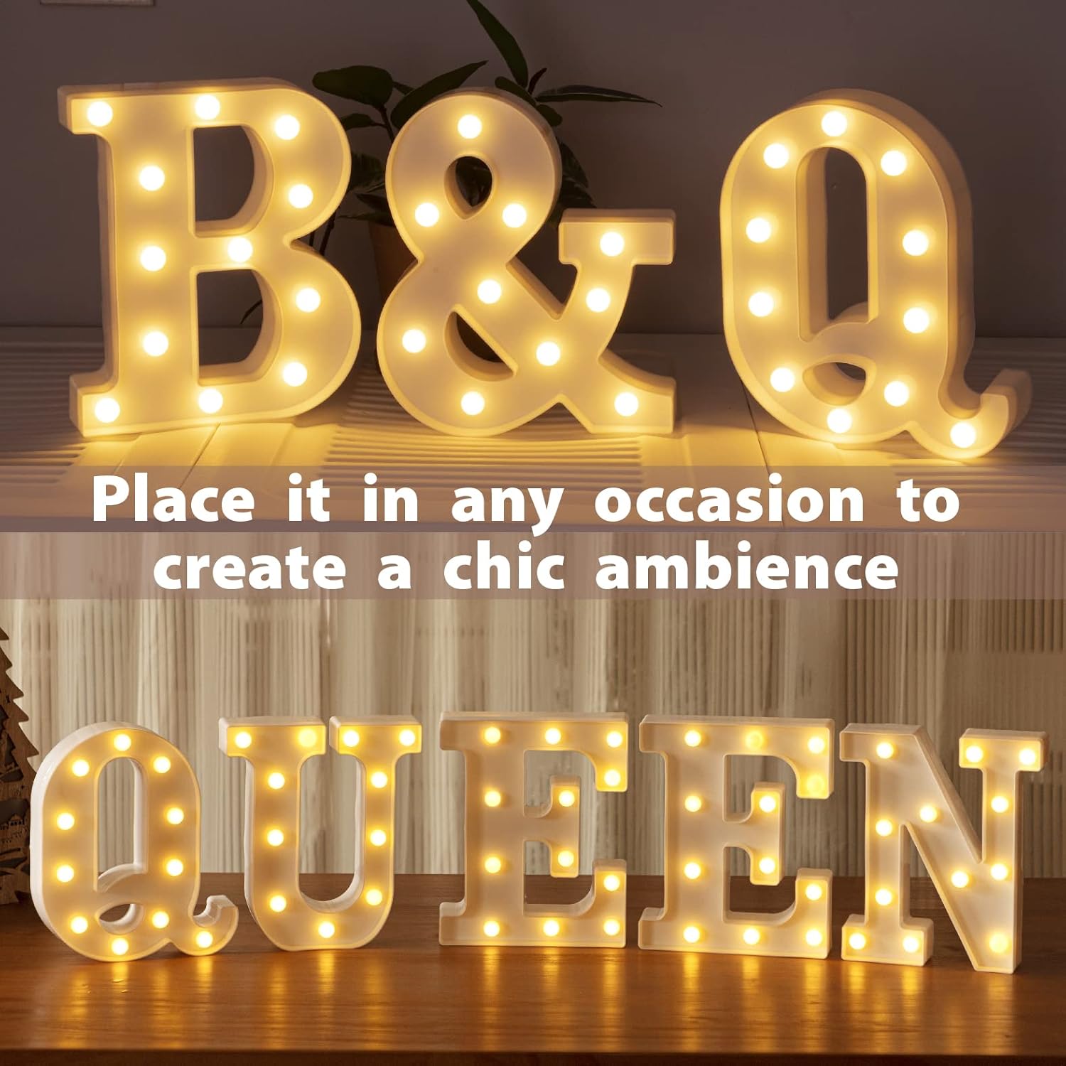 LED Marquee Letters Lights Sign-Q, HXWEIYE Led Letters Lights 26 Alphabet, Light Up Number 0-9 Letters Sign for Party Home Birthday Anniversary Battery Powered Lighted Letters(Warm White)