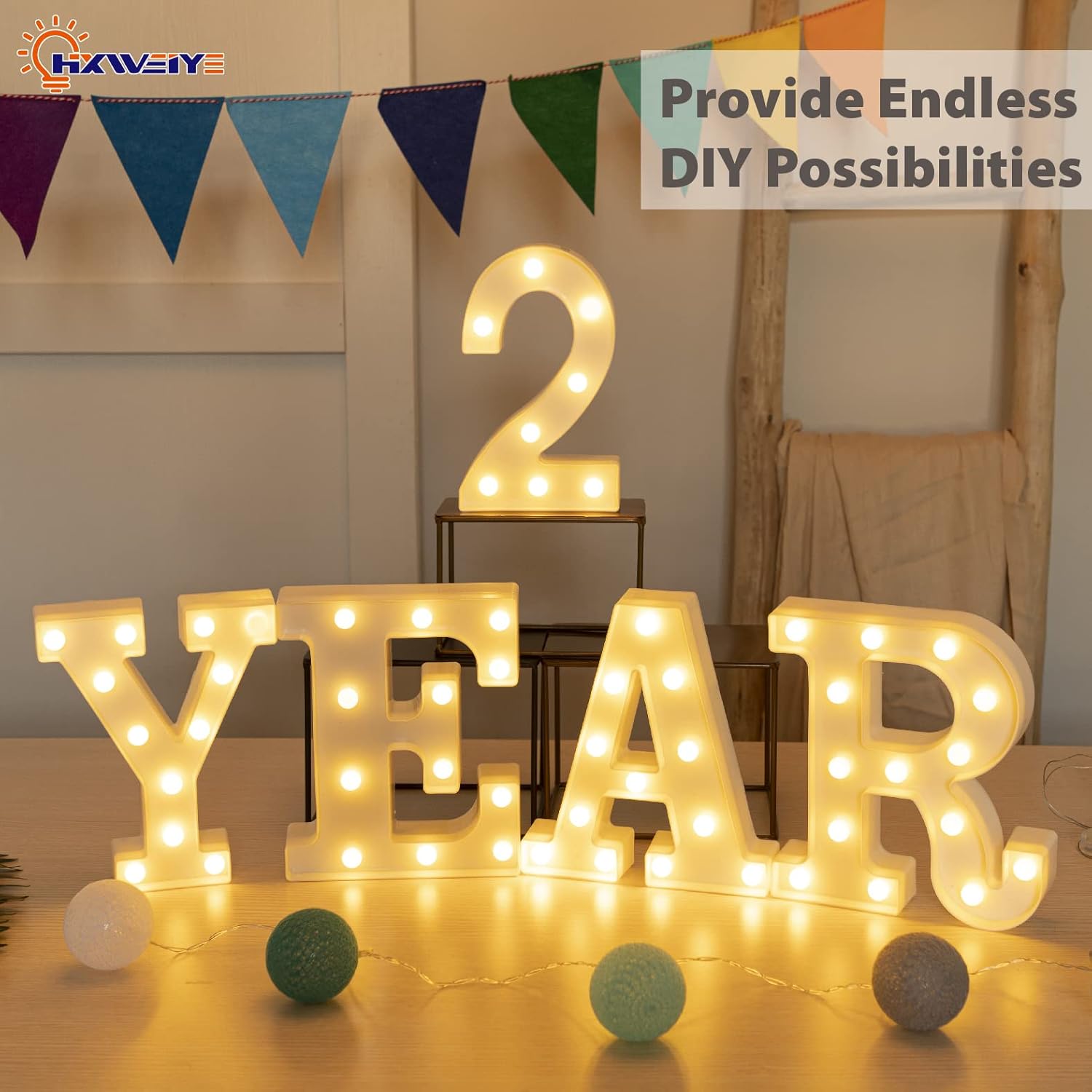 - 【DIY Words Freely】: A-Z alphabet letters, 0-9 Arabic numerals and symbols &, Forming words freely or add themes to different festival and anniversary. Such as spell out “1” on baby’s first birthday, “60” in wedding anniversary, “MERRY ME” “ I LOVE YOU” on making a proposal; HAPPY BIRTHDAY, HAPPY NEW YEAR, HEY 2023, JOY, BAR, MR & MRS, EAT, XMAS, TEAM, CRAZY etc. Light up your favorite words for special occasion, event, or home decorating.