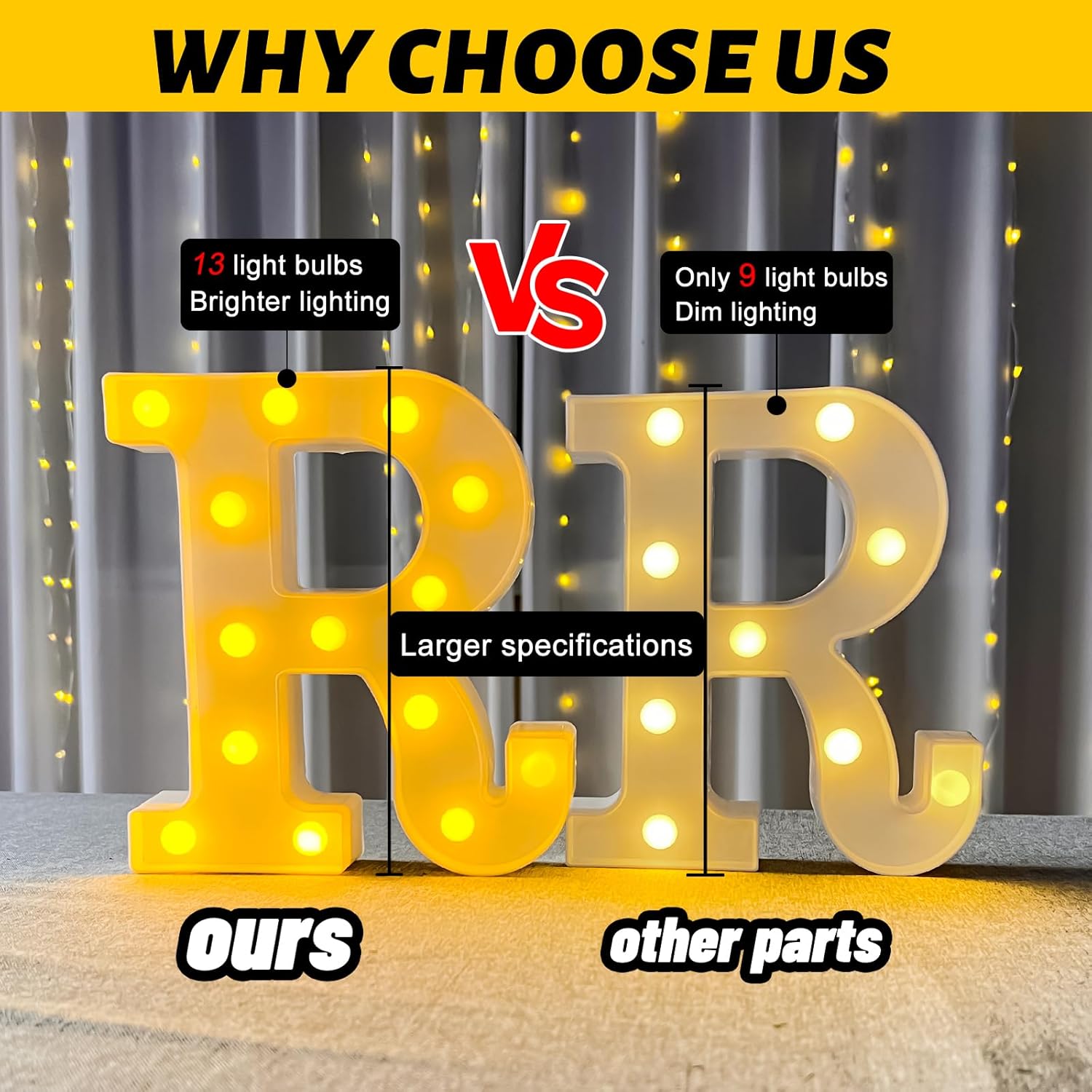 HXWEIYE LED Marquee Letters Lights Sign R, 26 Alphabet Light Up Letter and Number 0-9 Number Warm White Led Letters for Bar Party Birthday Home Wedding Décor