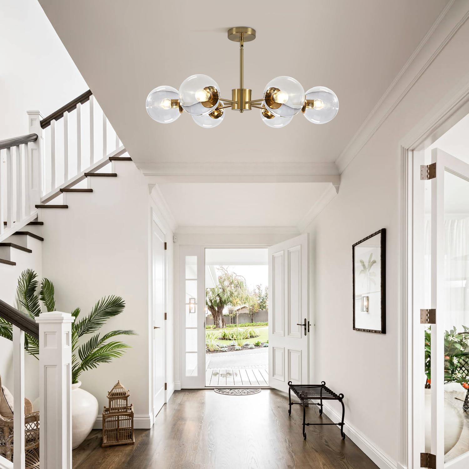 - 6-Light Glass Sputnik Light: The globe dining room chandelier is designed with high quality metal and clear bubble glass ball shade. Six spherical lights extend from the central column in brass, not only maximizing the lighting effects but also adding an elegant and luxurious touch to your space