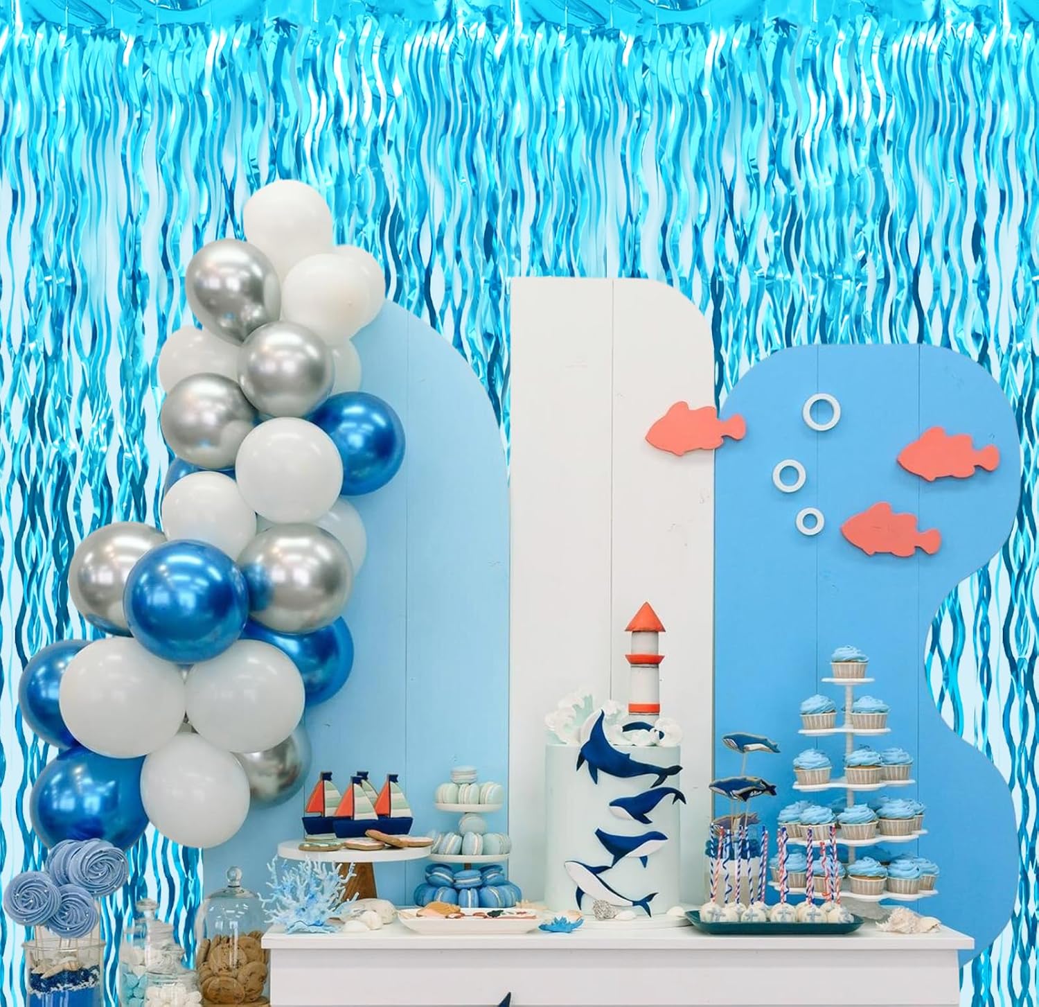 - Package Includes:4 pack wavy light blue foil fringe curtain,3.2 ft x 6.5 ft each,suitable for hanging on a door or coverage a wall fully