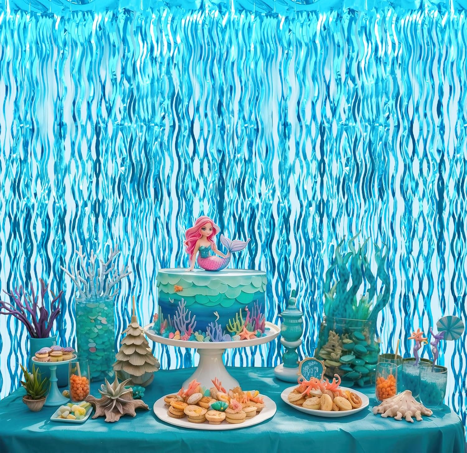 - Package Includes:3 pack wavy light blue foil fringe curtains,3.2 ft x 6.5 ft each,suitable for hanging on a door or coverage a wall fully