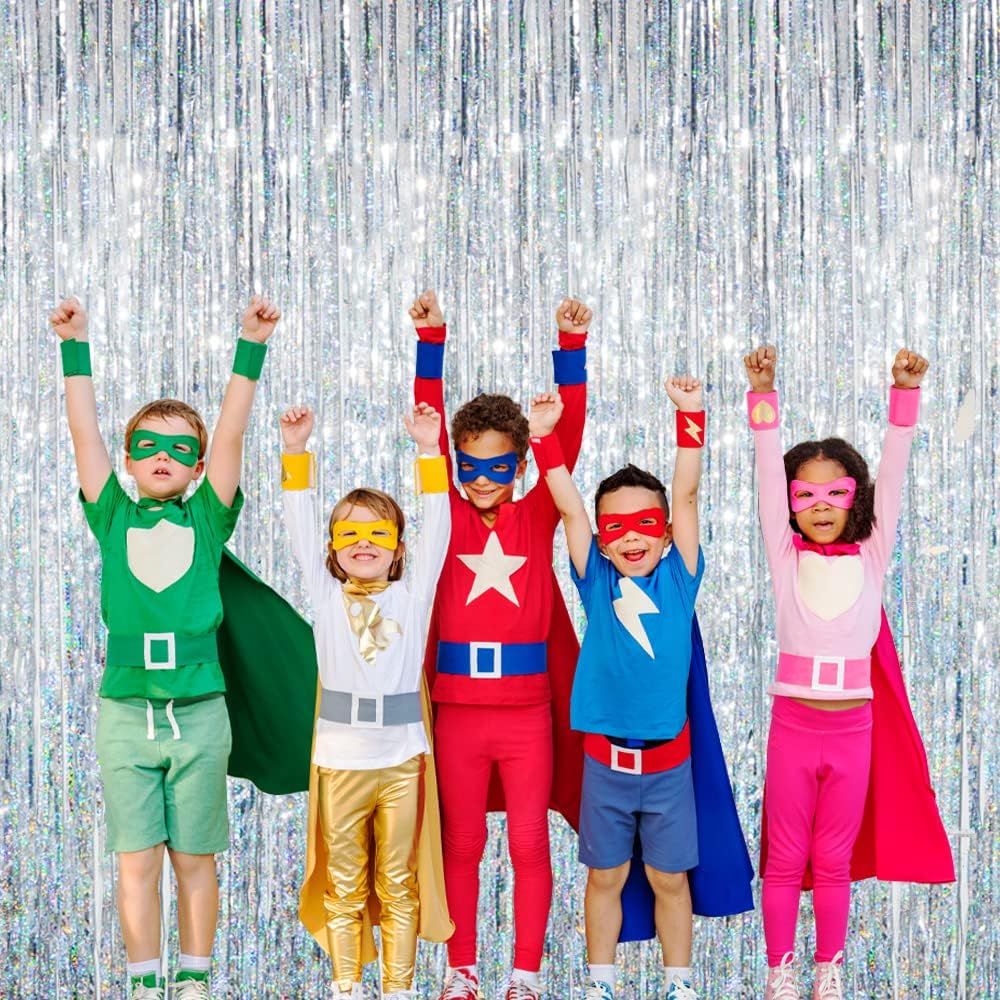 - Package Includes:5 pack shiny silver foil fringe curtain,3.2 ft x 8.2 ft each,suitable for hanging on a door or coverage a wall fully