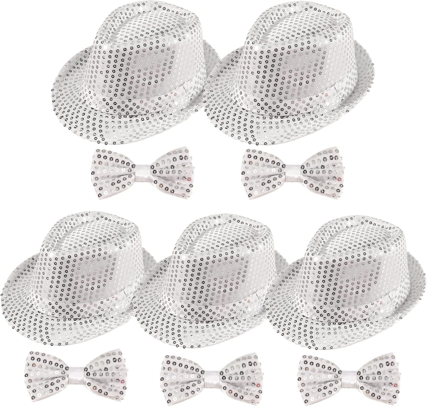 10 Pcs Unisex Sequin Fedora Hat Sequin Bow Ties Set Bling Retro Dance Jazz Cap Funky Party Costume Fedora