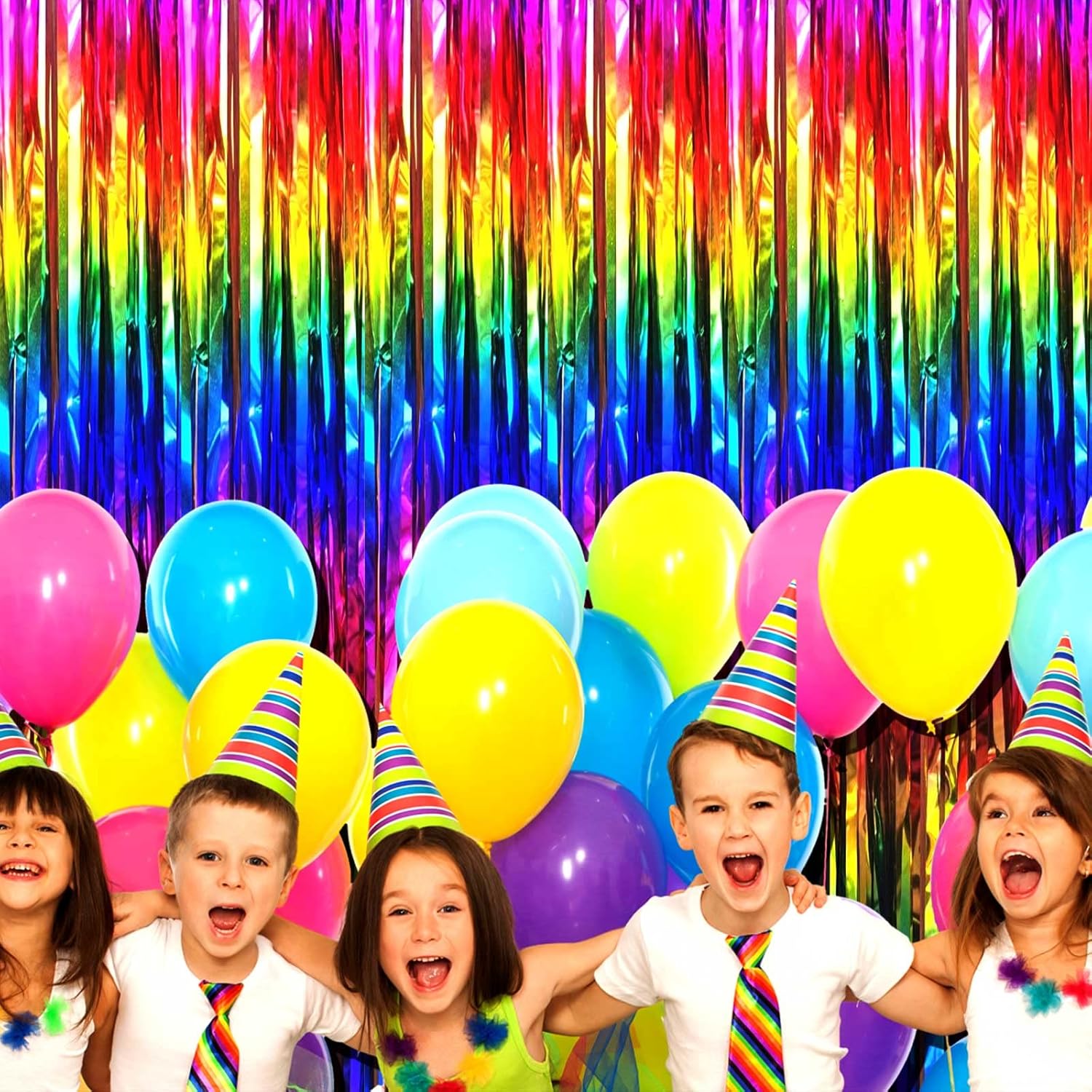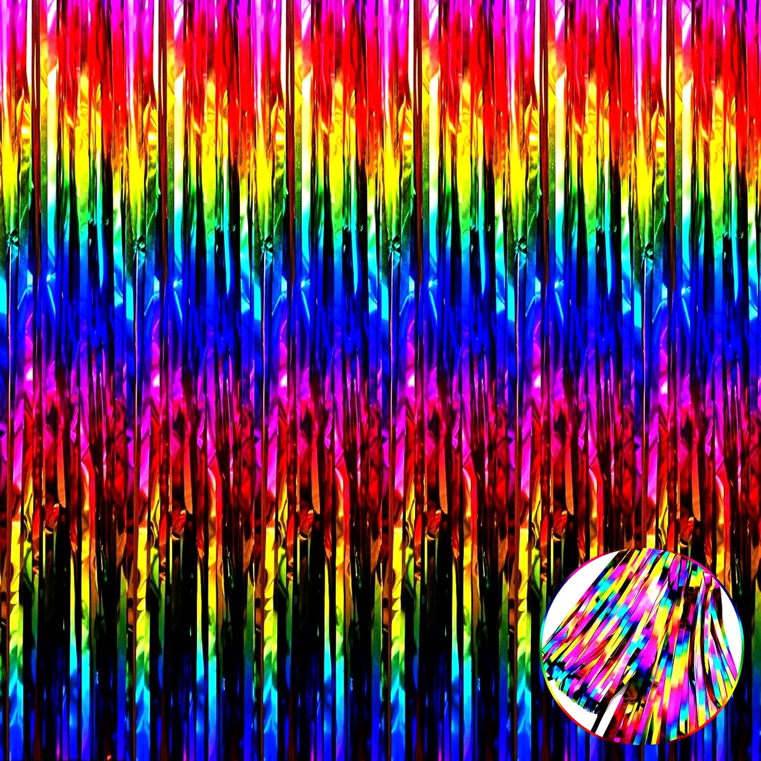 4 Pack Rrainbow Foil Fringe Curtain Backdrop, 3.28Ft x 9.84Ft Colorful Metallic Tinsel Streamers Curtains for Party, Photo Booth Props, Birthday, 2022 Graduation Supplies, One Size