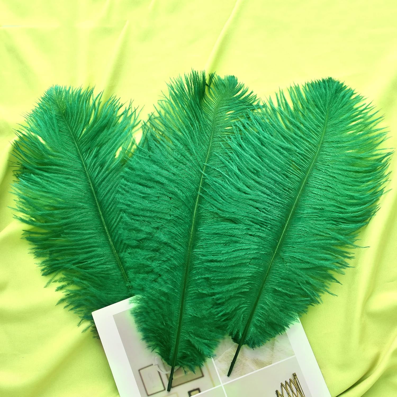 Ballinger Green Ostrich Feathers Bulk - 24pcs 10-12inch Feathers for Vase, Wedding Party Centerpieces Mardi Gras Decorations and Home Decor