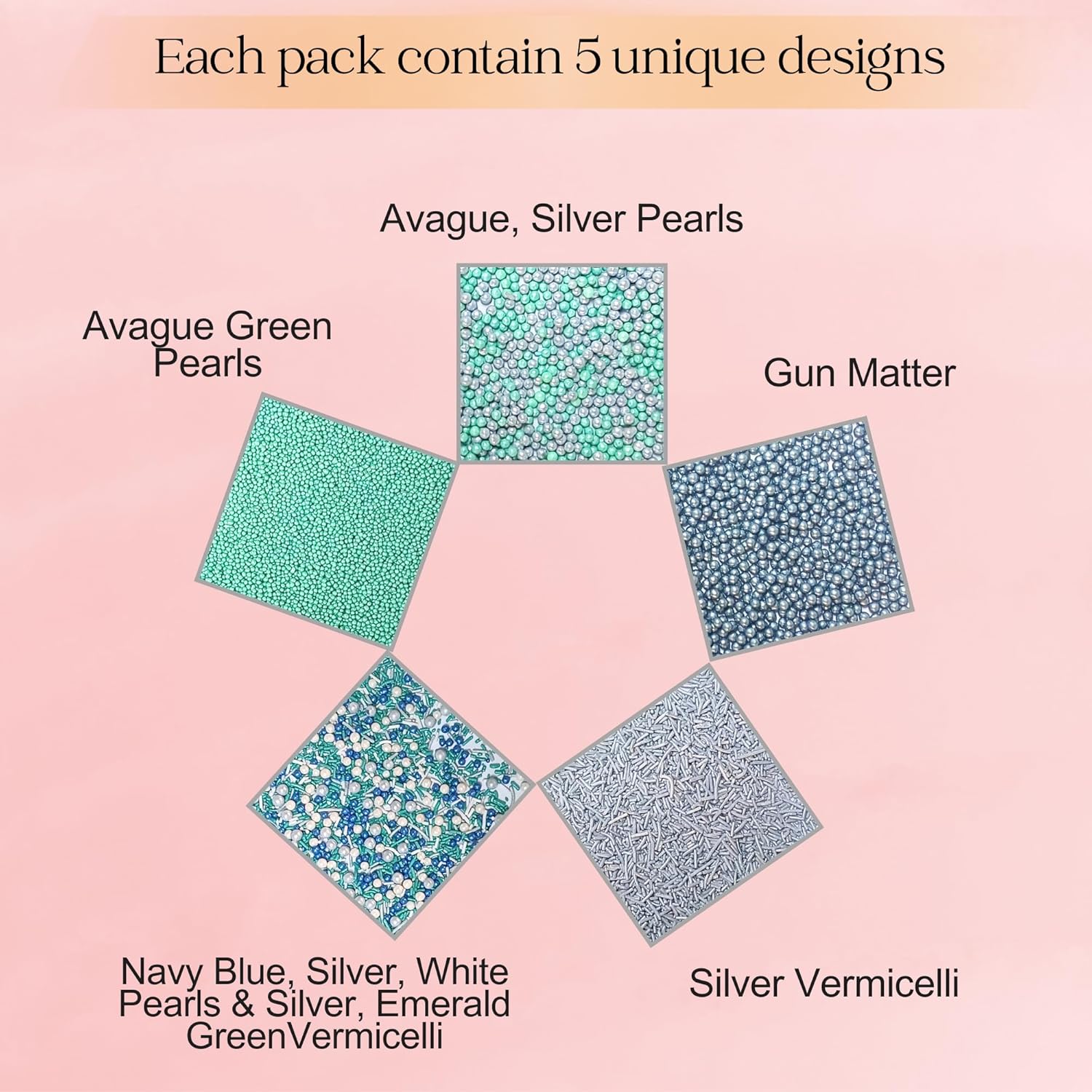 - Confect Sprinkles are made with the finest quality Ingredients & are soft to chew Sprinkles come in a unique pack of 5 assorted colors and sizes.