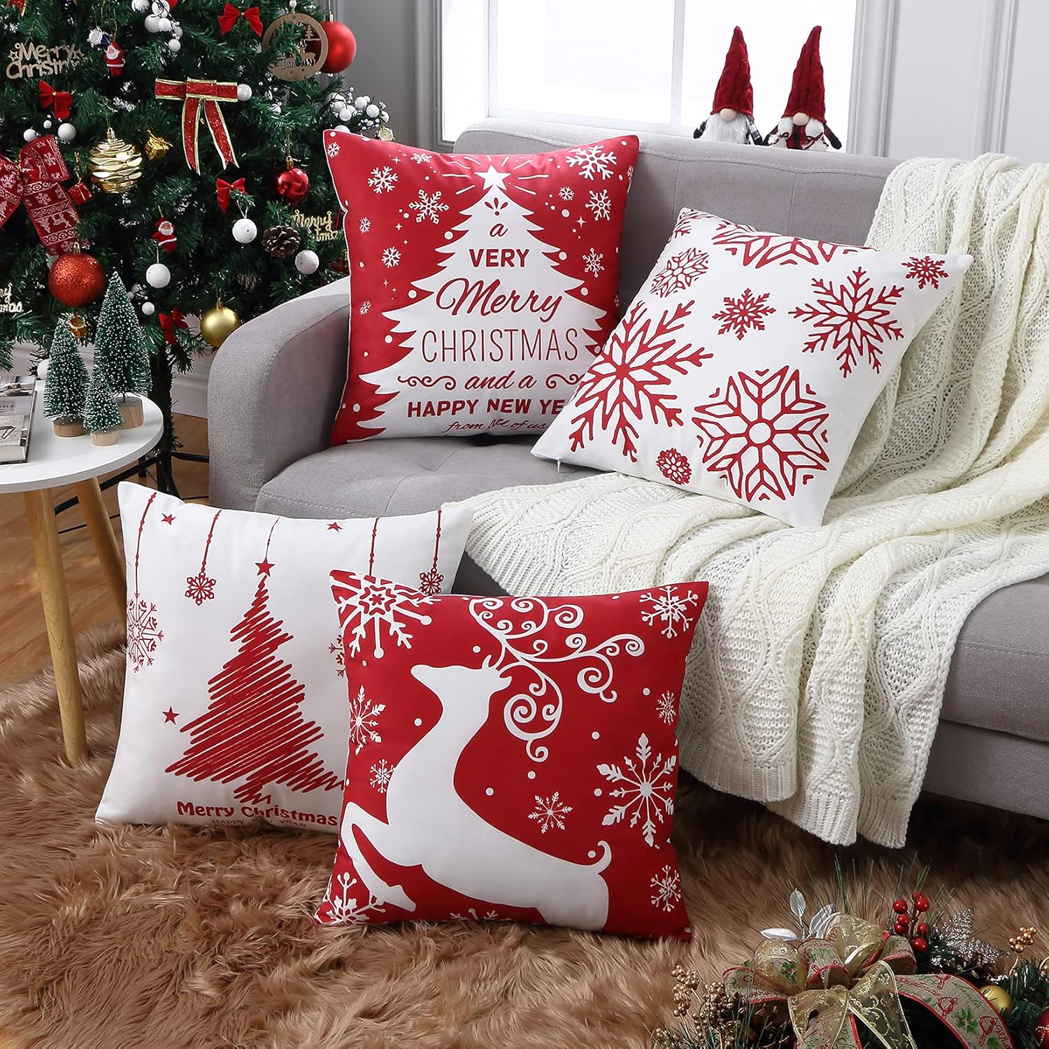 - 🎄{Great Christmas Decor} With the holiday season just around the corner, giving your home that lovely Christmassy look with our christmas cushion covers 20x20 will get lots of compliments from your guests. These printed patterns, including a Christmas Tree, Elk, and “Merry Christmas” letters, are specially designed for holiday parties and everyday entertainments. These red and white christmas pillow covers will effortlessly enhance your holiday decorations and create a festive atmosphere.