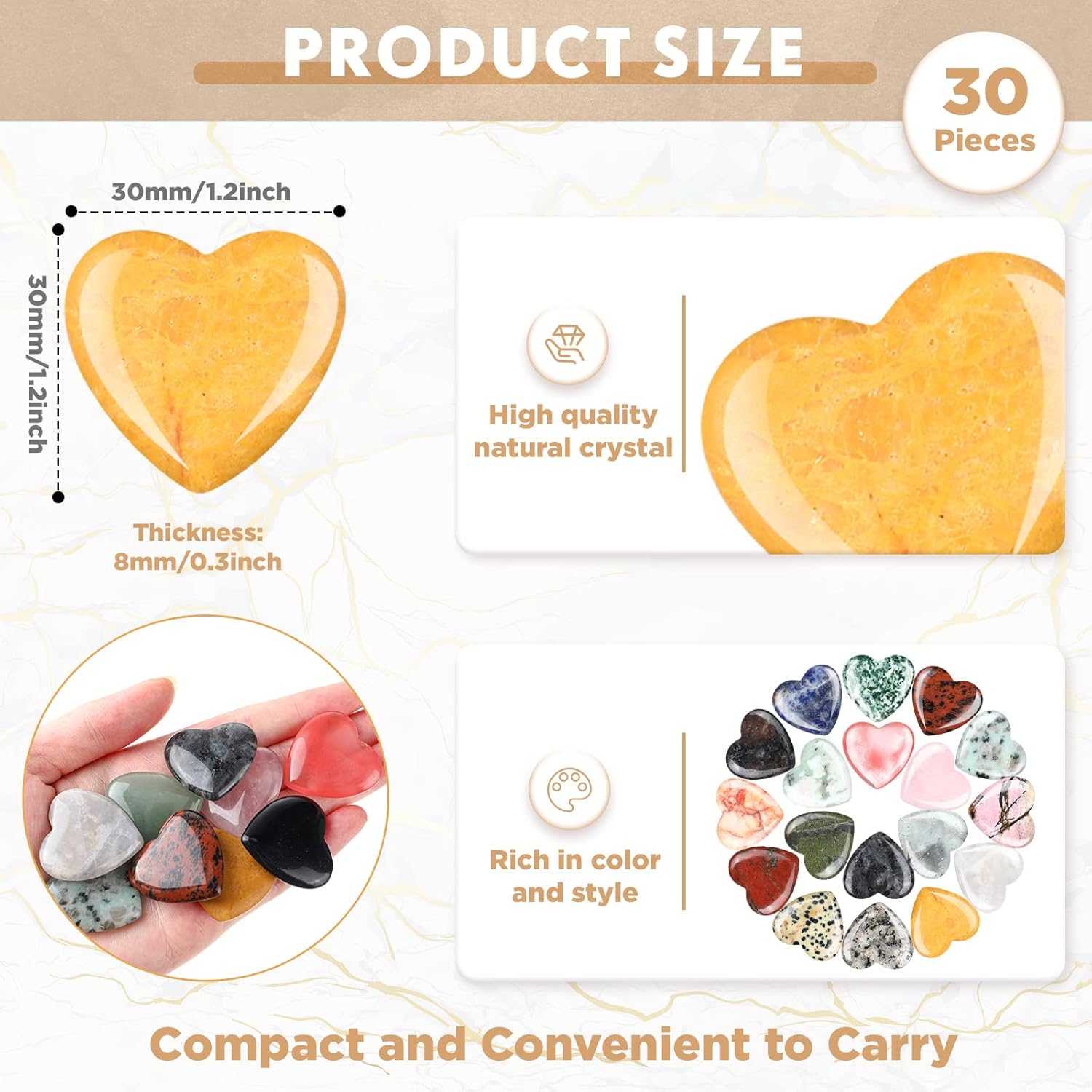 Nuenen 30 Pcs Heart Shape Crystals Bulk 1.2 Inch Gemstone Heart Stones Worry Stone Rocks Quartz Love Pocket Palm Bulk for Mother's Day Gifts Stress Relief Gift (Vintage Color)