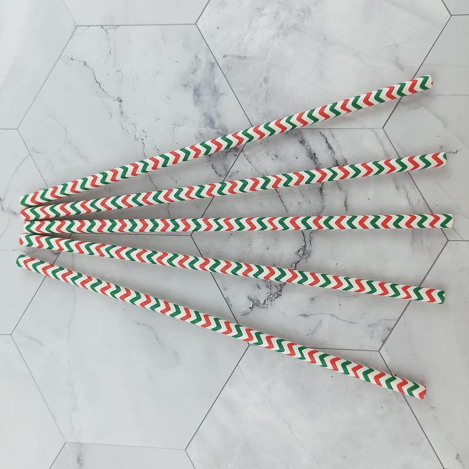 - 🎀Includes 100 pcs Red and Green Waves Striped party Paper Straws.
