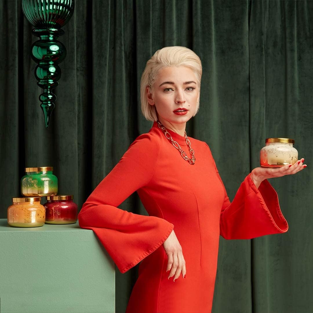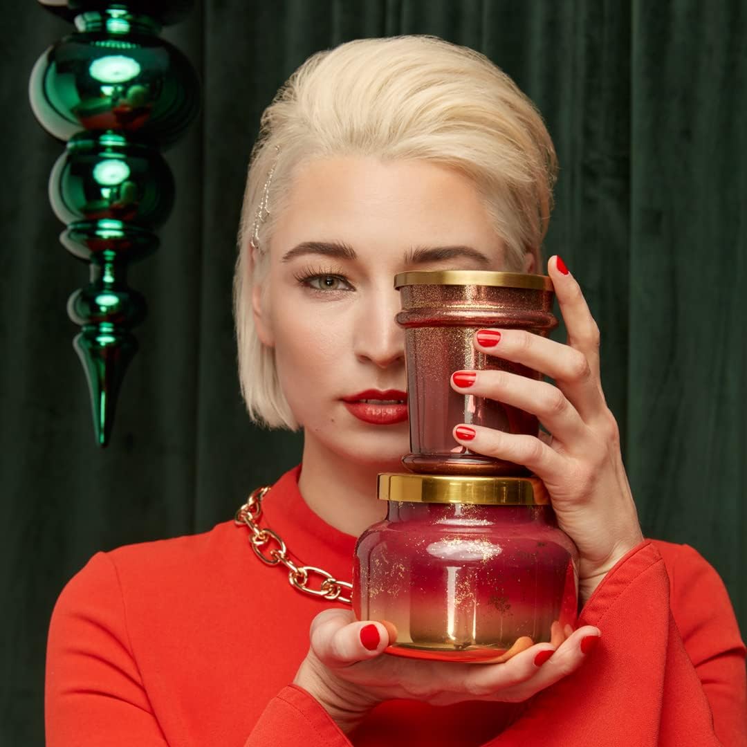 Capri Blue Glimmer Jar Candles - Luxury Holiday Scented Candles for Home - Long Lasting Soy Wax Blend - Scented Holiday & Home Decor - Tinsel & Spice Signature Jar (19 oz)