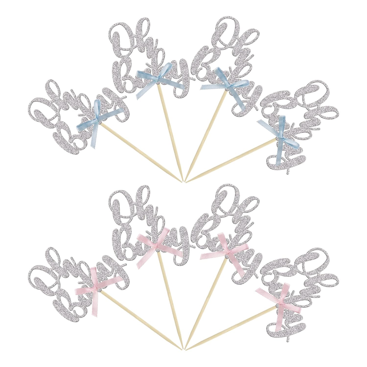 - 💗💗These Silver Oh Baby with Bowknot Cupcake Toppers are so cute and good for oh baby theme party, gender reveal party, baby shower theme party, kids birthday party cupcake decorations. They can make your cupcake more attractive and bring the fun to your party. You can also apply them for ice cream, fruits, cookies and other desserts.