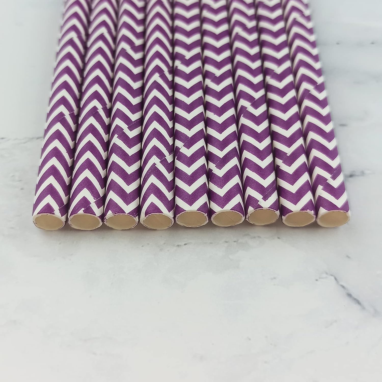 - 🎀Includes 100 pcs Purple Waves Striped party Paper Straws.