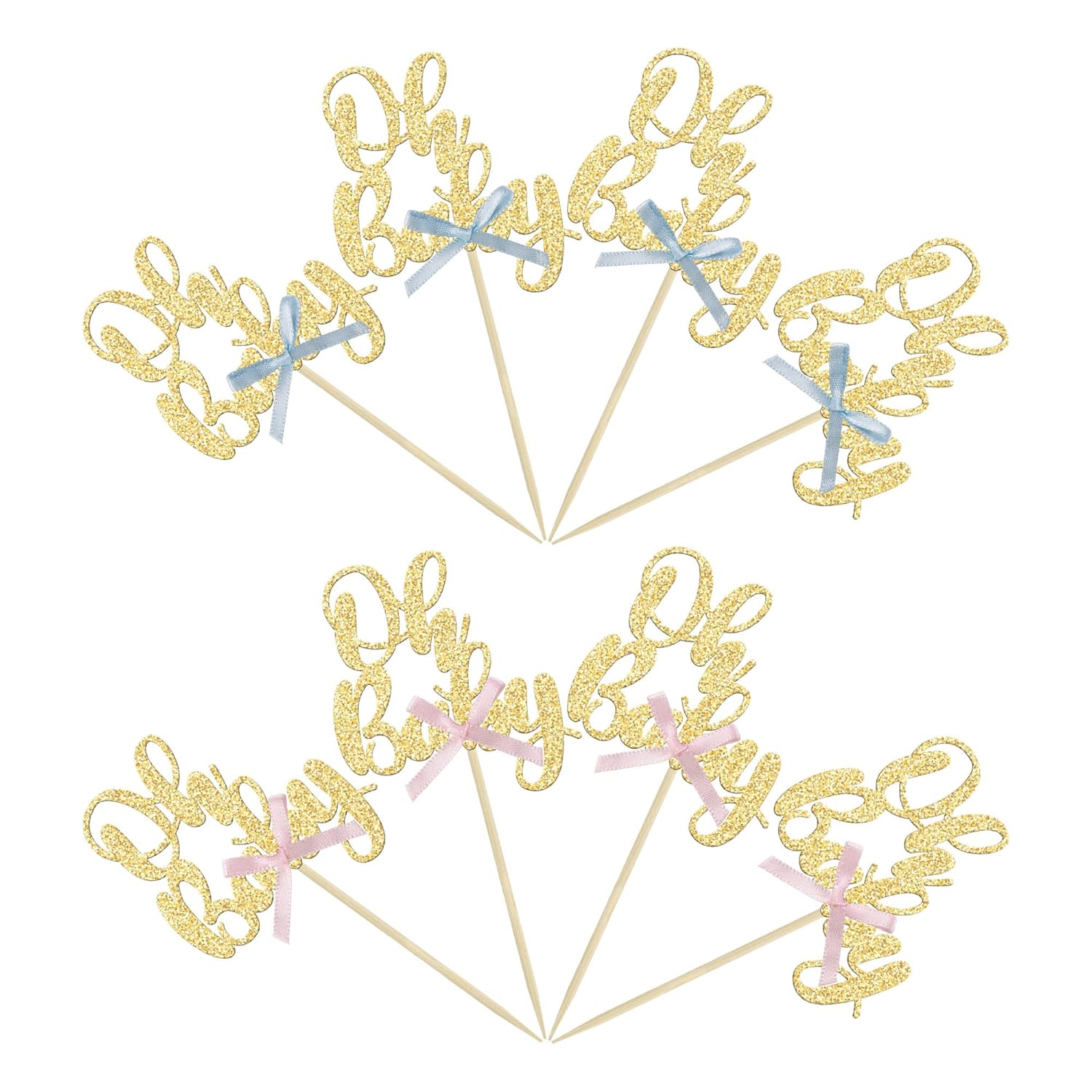 - 💗💗These Gold Oh Baby with Bowknot Cupcake Toppers are so cute and good for oh baby theme party, gender reveal party, baby shower theme party, kids birthday party cupcake decorations. They can make your cupcake more attractive and bring the fun to your party. You can also apply them for ice cream, fruits, cookies and other desserts.