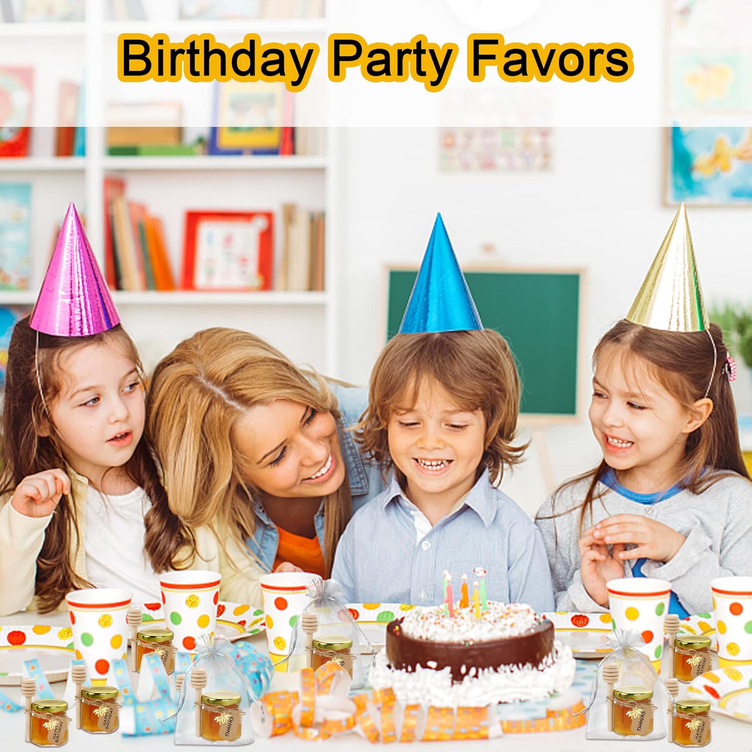 - Elegant Small Honey Jars for Party Favors: Like golden drops of sunshine, our mini honey jars with dippers become sweet keepsakes for weddings, baby showers, and more. The 1.5 oz glass honey jars with lids add a charming touch to heartfelt celebrations.
