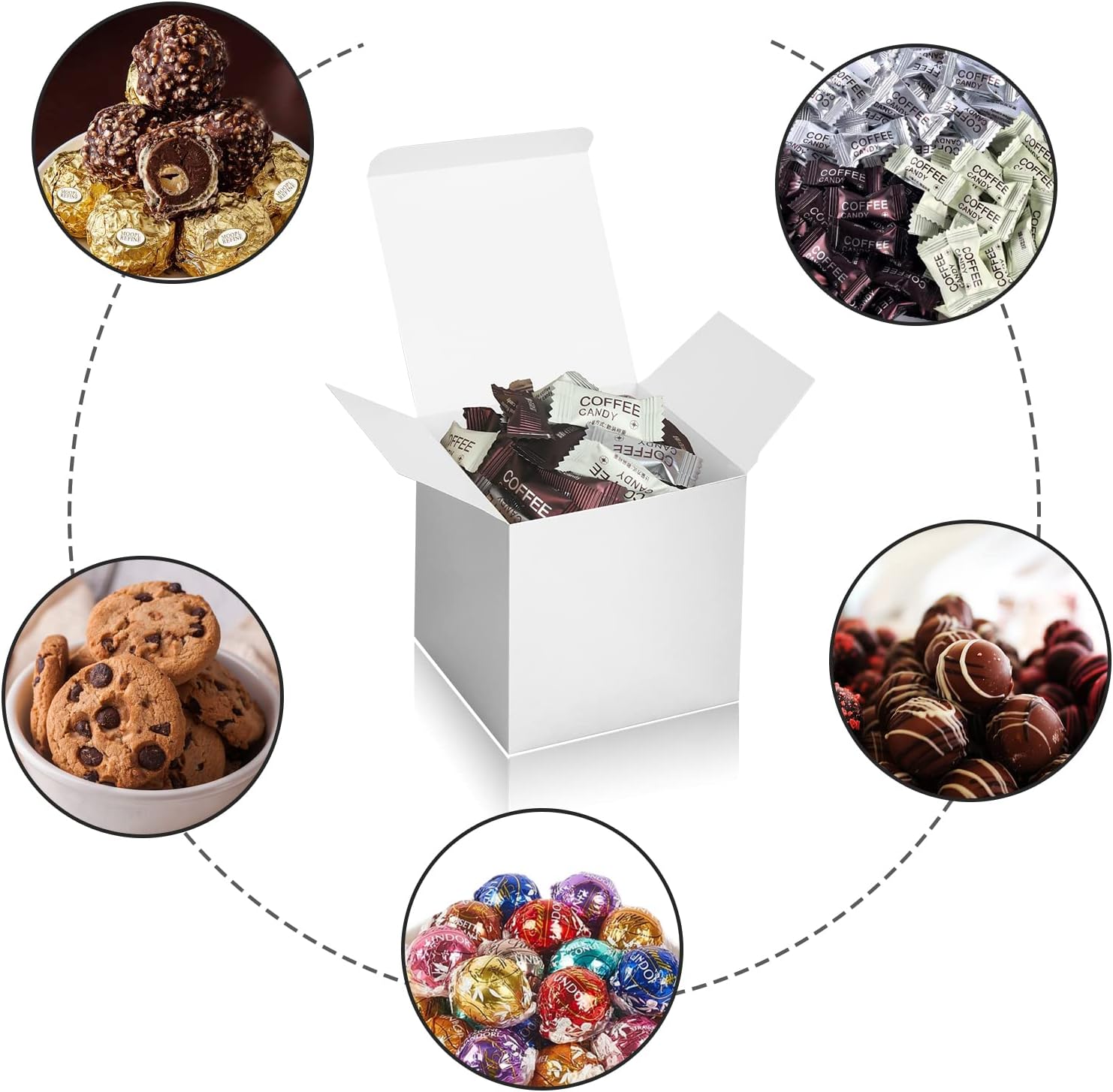 - Size Information: Small candy box size is 2x2x2 Inches,cube shape, It is already equipped with ribbon and blank tag to complete the outside classy gift looks.White favor boxes are applicable to store candies, chocolates, cookies, jewelry, bracelet, ring or other small gift.