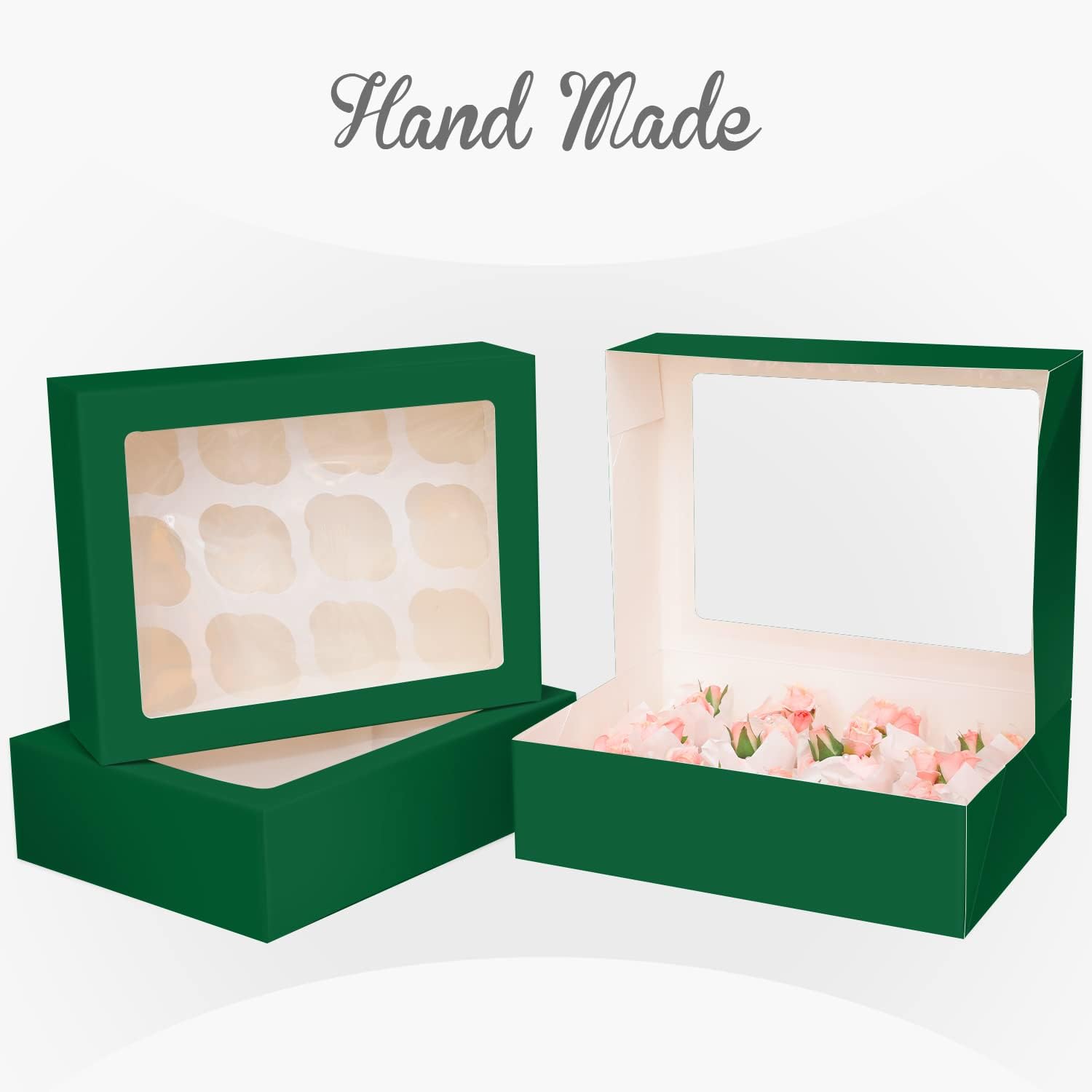 - (1)Size:Forest Green/10pcs/13*10*3.5inch, multifunctional bakery cupcake box.