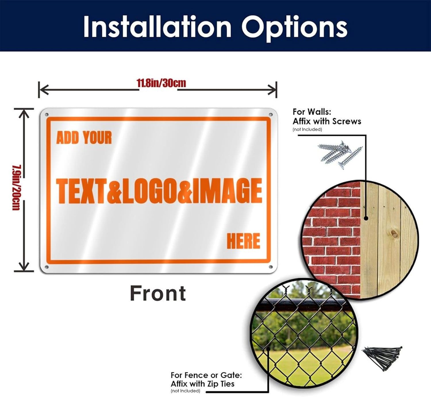 - 12 x 8 inch aluminum custom metal sign with 4 pre-drilled holes on the side that can be easily attached to any surface such as walls, doors or fences with cable ties or screws.