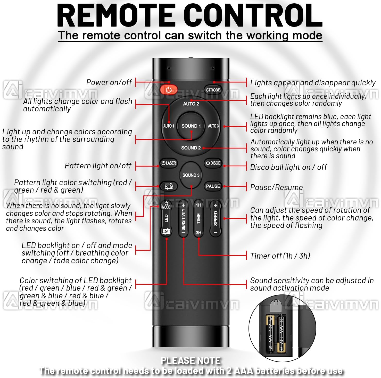 - 3 Sound activated modes sensitively sync to the beat of nearby music while changing the color and speed of the lights to make your rave party even more exciting.