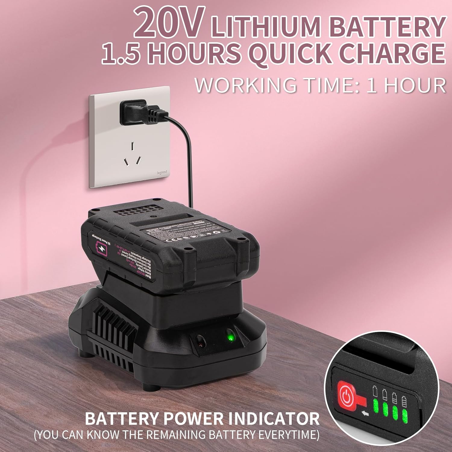 Hot Glue Gun, 20V Pink Cordless Glue Gun with 30 PCS Full Size Glue Sticks, 2Ah Rechargeable Battery Glue Gun Kit for DIY, Arts & Craft, Decorations, Gift for Women