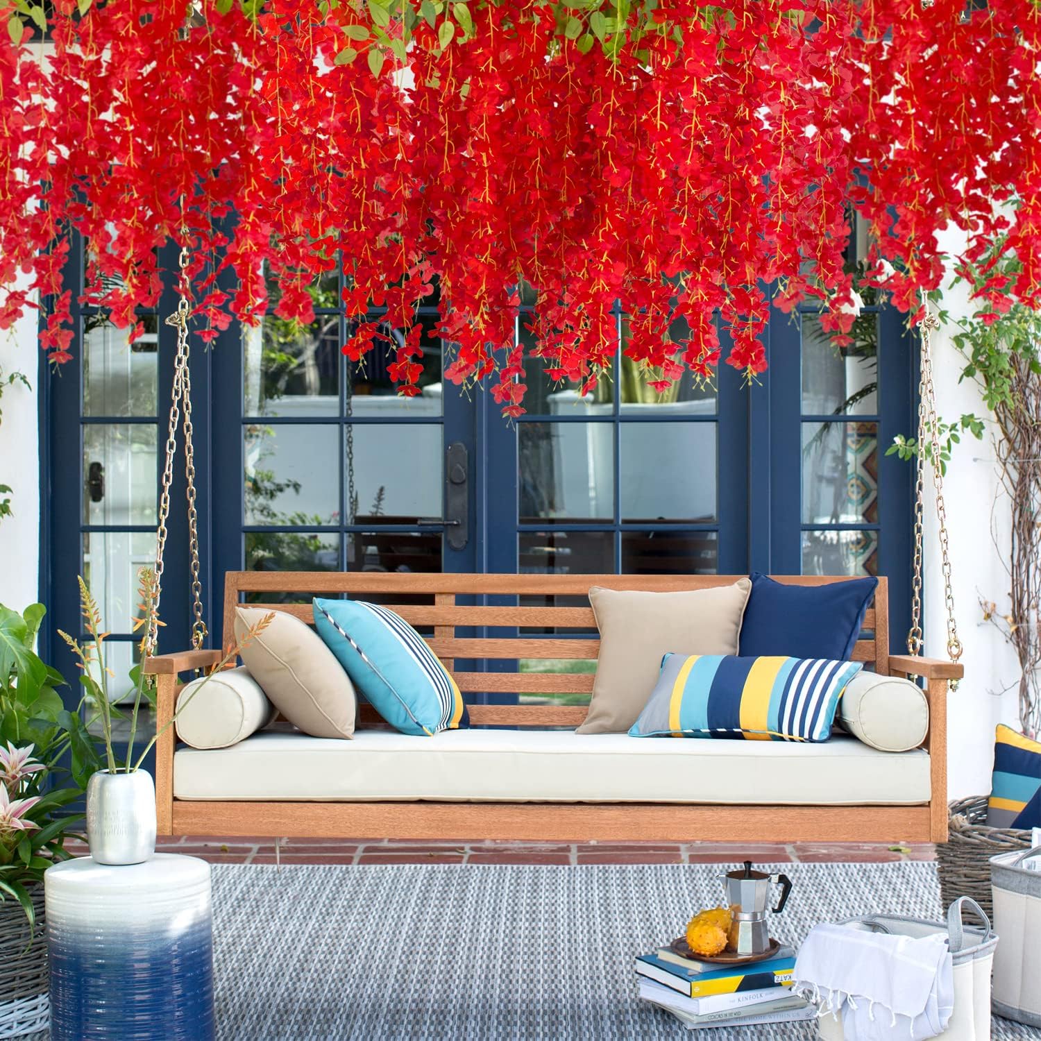 24 Pack Artificial Fake Wisteria Vine Ratta (3.75 Feet) Hanging Garland Silk Flowers String Home Party Wedding Decor (Red)