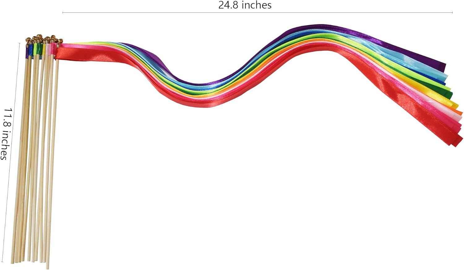 - 🌈Create a magical wedding with these beautiful Multi-color Wedding send off ribbon wands. Each fairy streamer wand has 3 pieces colored ribbons in 24" long, and 1 fairy wooden stick in 12" long. Wedding ribbon wands create great photo opportunities at send off,Create warm and delightful interaction with this rainbow ribbon wands